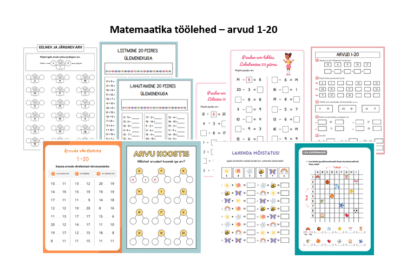 Arvud 1-20, matemaatika töölehed 1.-2. klassile