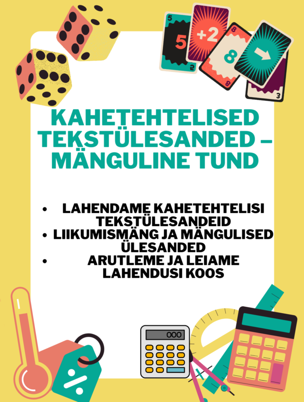 Tegemist on mängulise tunnikavaga, mille keskmes on kahetehtelised tekstülesanded. Tund sisaldab liikumismängu ja erinevaid ülesandeid, mis aitavad õpilastel arendada tekstülesannete lahendamise oskust, loogilist mõtlemist ja arusaamist tehete järjekorrast aktiivse ja kaasava tegevuse kaudu.