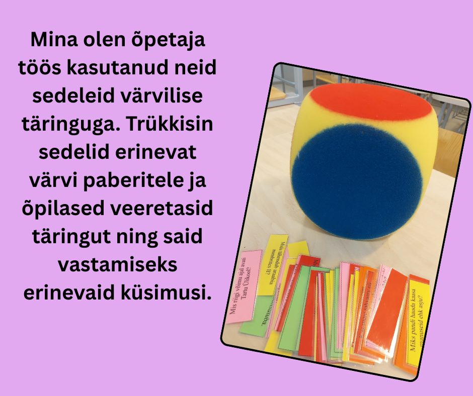 Komplektis on 128 küsimust, mis on lehtedele paigutatud sedelitena. Komplektis on word- ja pdf-failid.