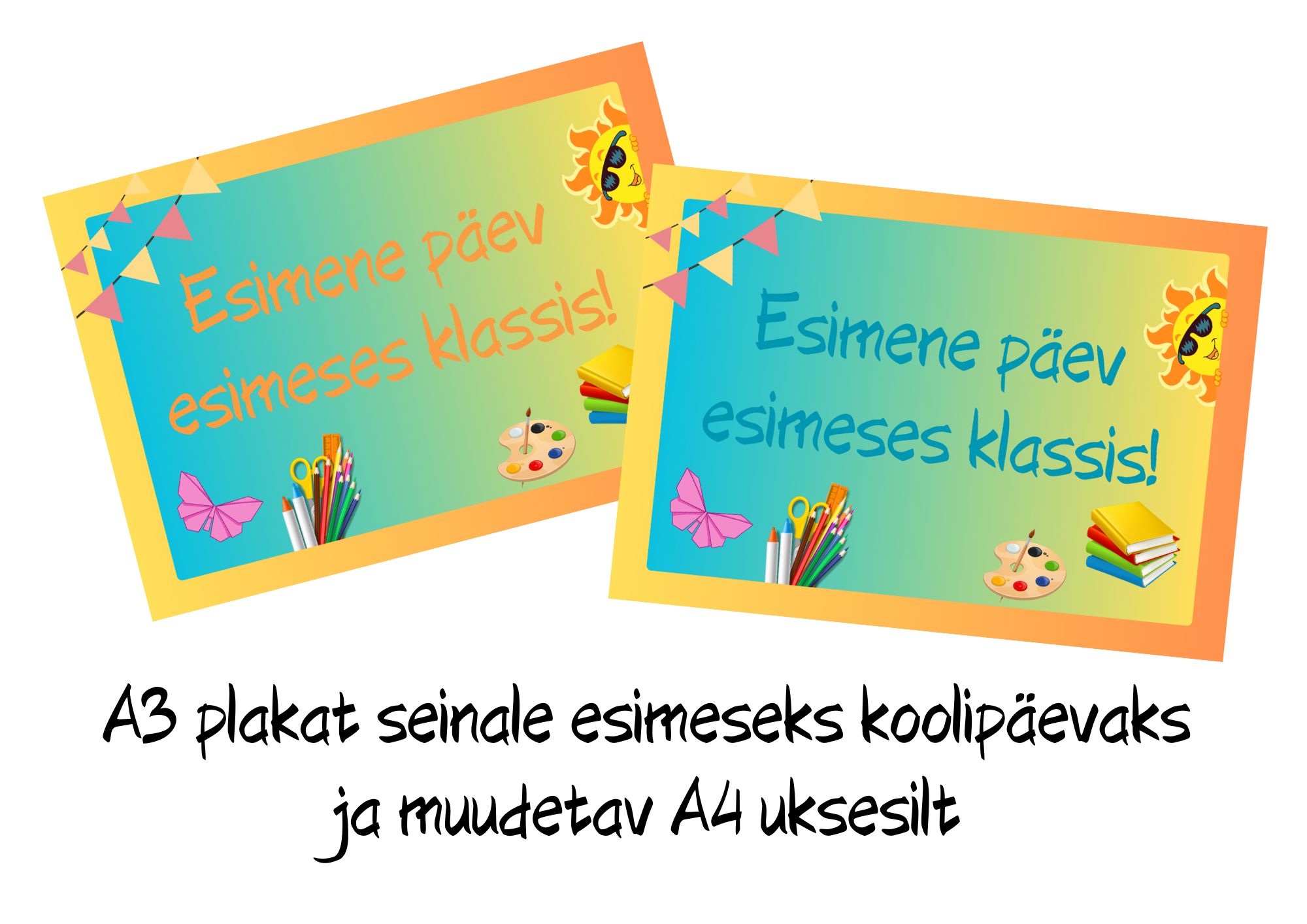 A 3 plakat esimeseks koolipäevaks ja A4 muudetav uksesilt koolitarvetega