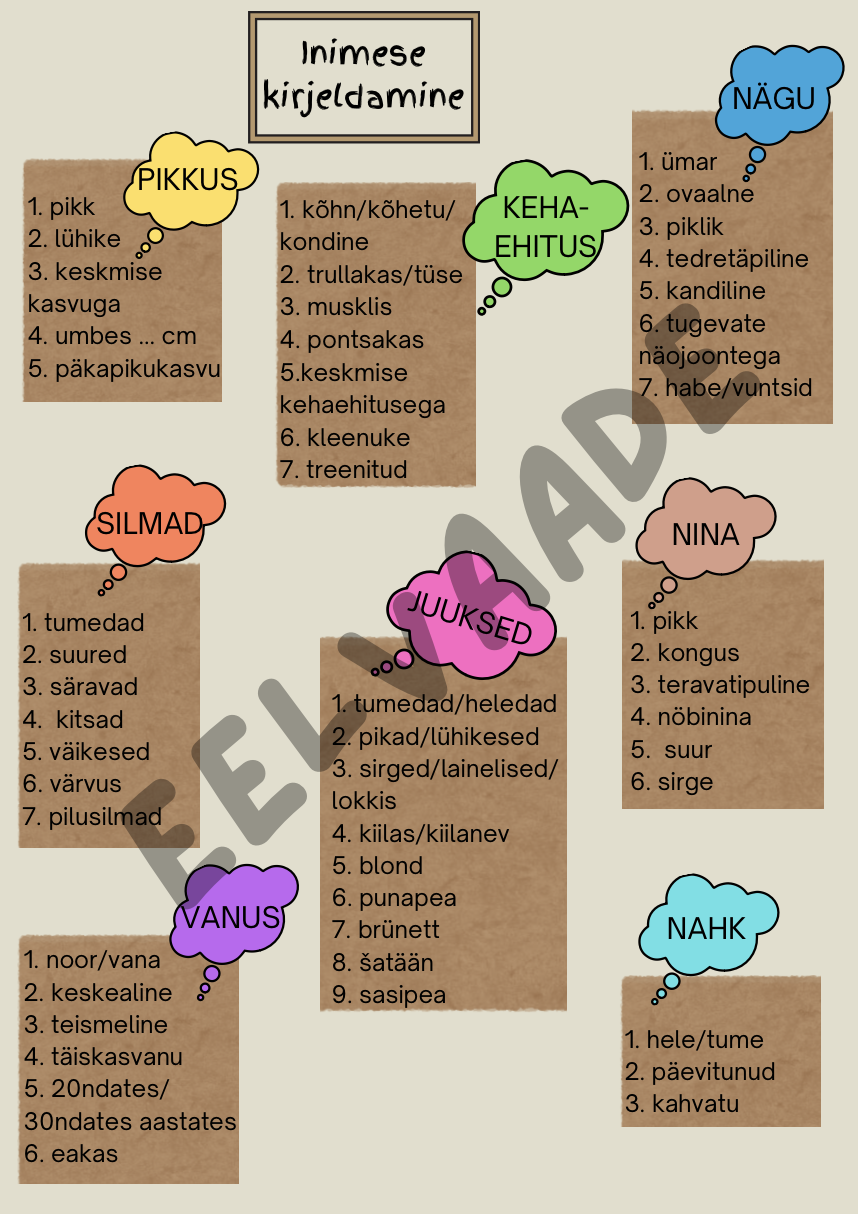 / Abivahend inimese kirjelduse kirjutamiseks