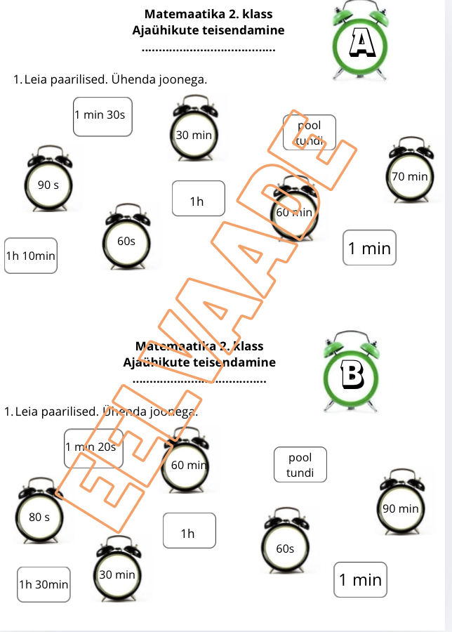 10 minuti tunnikontroll kahes variandis. Ühel A4 lehel kaks varianti kahelt poolt