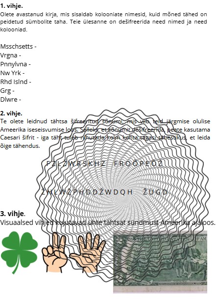 Lõbus Ameerika iseseisvumist käsitlev vihjemäng. Õpilased peavad ära arvama ja dešifreerima Ameerikaga seotud mõisteid ja sündmusi. Õpetajale on ka kaasa antud lahendus.