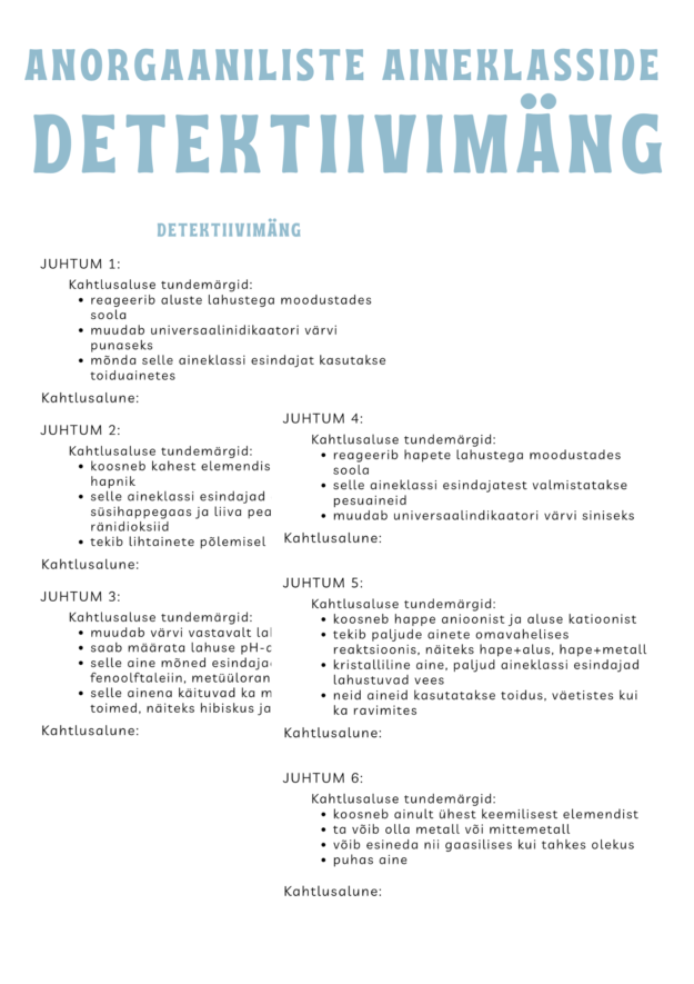 Anorgaaniliste aineklasside DETEKTIIVIMÄNG