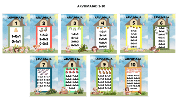 Arvumajad palaktid (1-10) arvukoostise ja peastarvutamise oskuse kinnistamiseks.