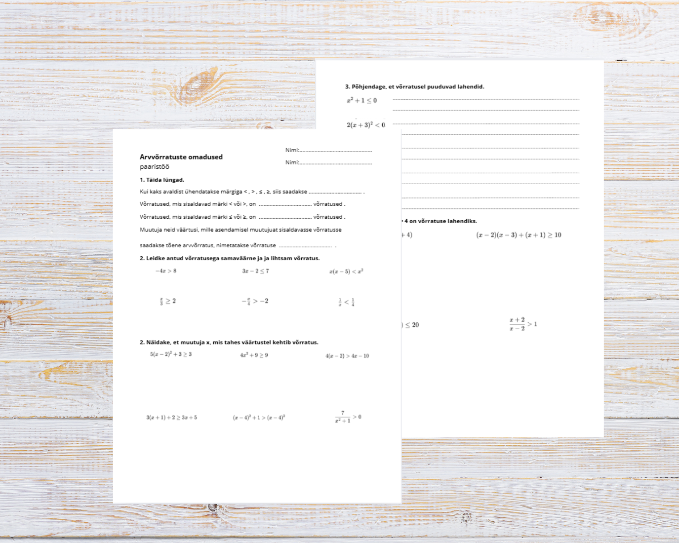 Failis on 2 lehte, prindituna 1 leht (mõlemal pool on ülesanded). Tehtud Lepmanni õpiku järgi. Tegin teiseks tunniks, kui teema on juba läbitud ja samad harjutused eelnevalt koos lahendatud.