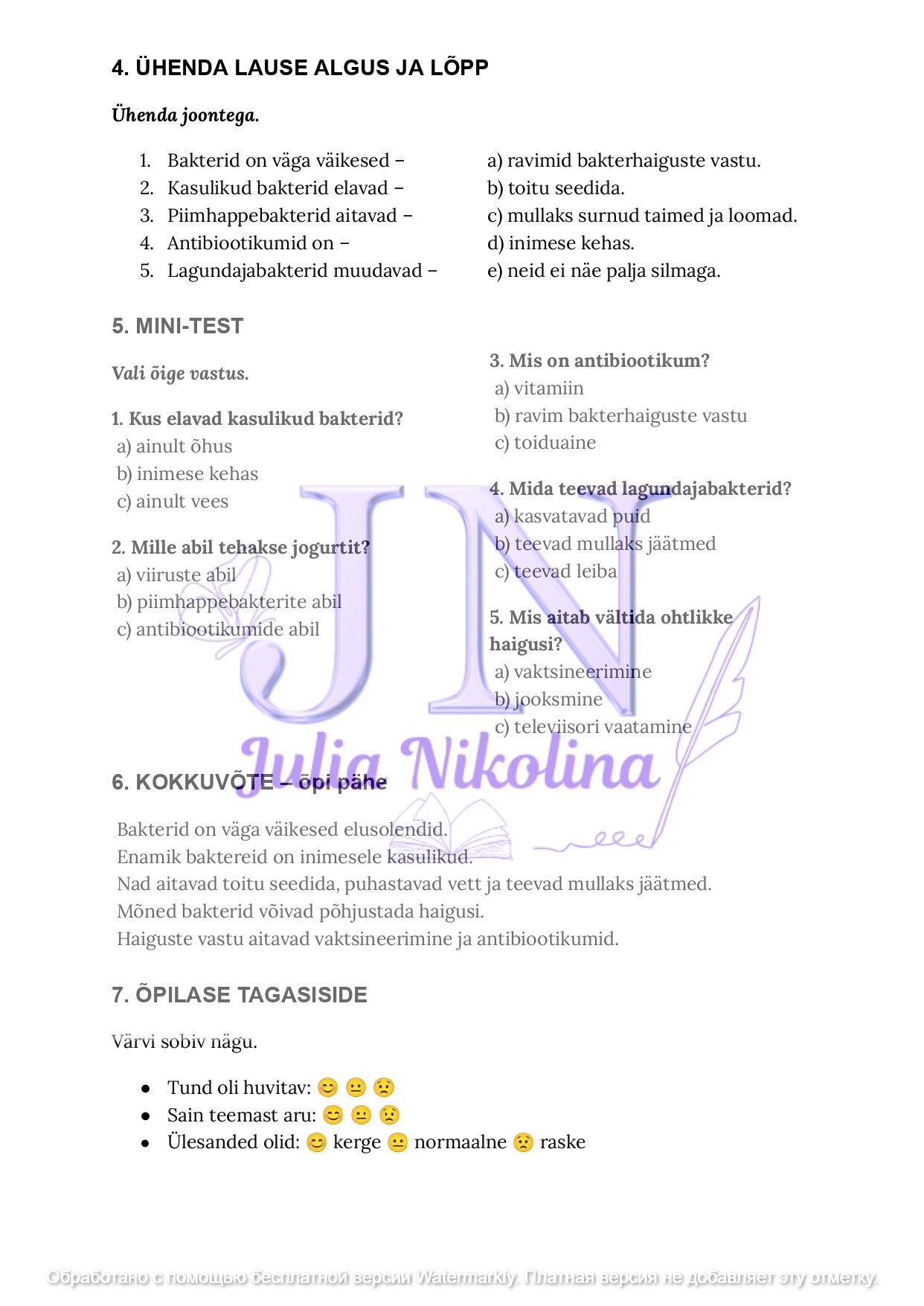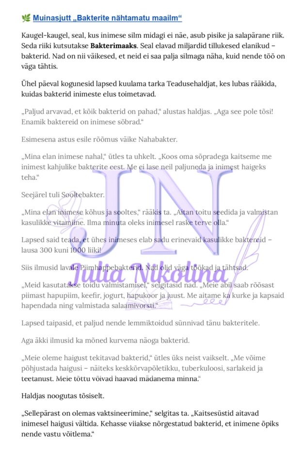 Õppematerjal: Muinasjutt ja töölehed „Bakterite nähtamatu maailm“