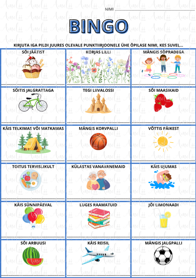 - Kaasahaarav BINGO-mäng – sobib ideaalselt tutvumiseks ja suhtlemiseks