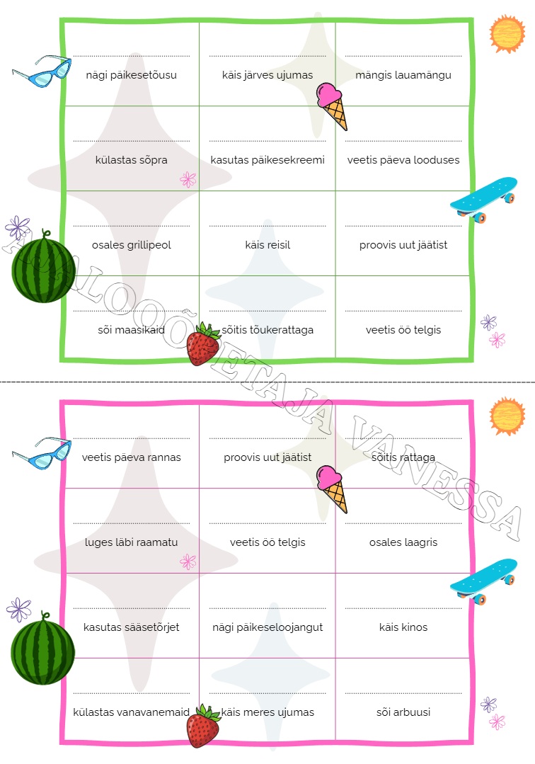 Bingomäng “Suveseiklused” (4 tk)