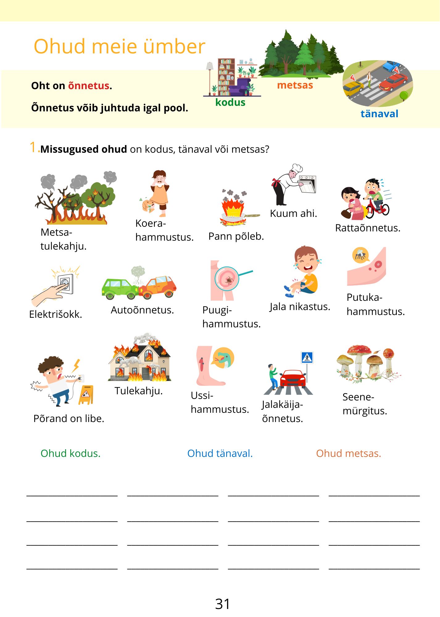 - Ohutus: kodu-, kooli-, liiklus- ja loodusoht