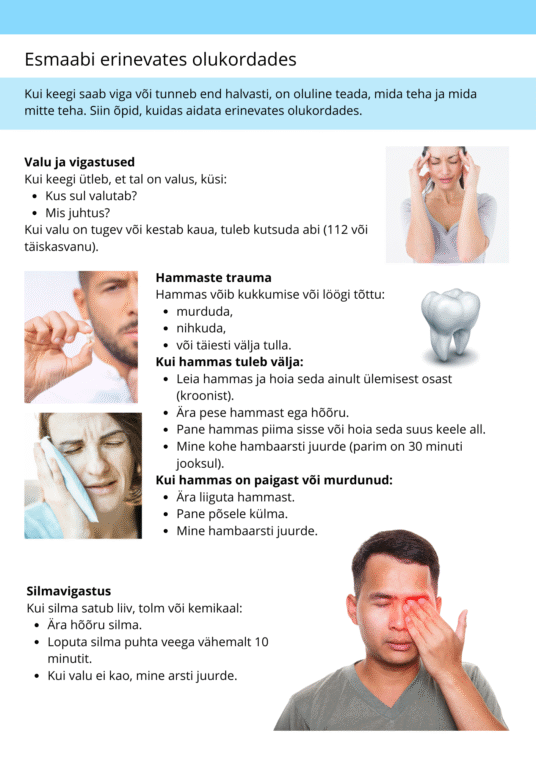 Esmaabi erinevates olukordades + ülesanded