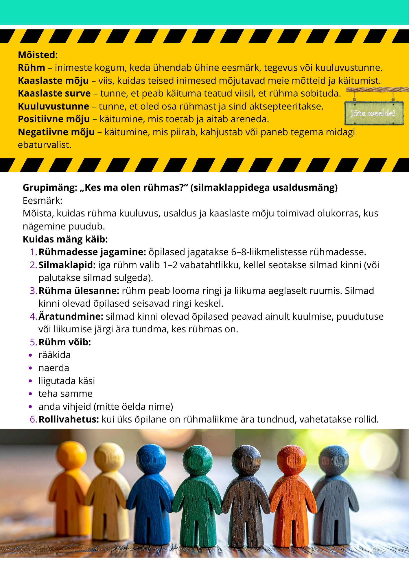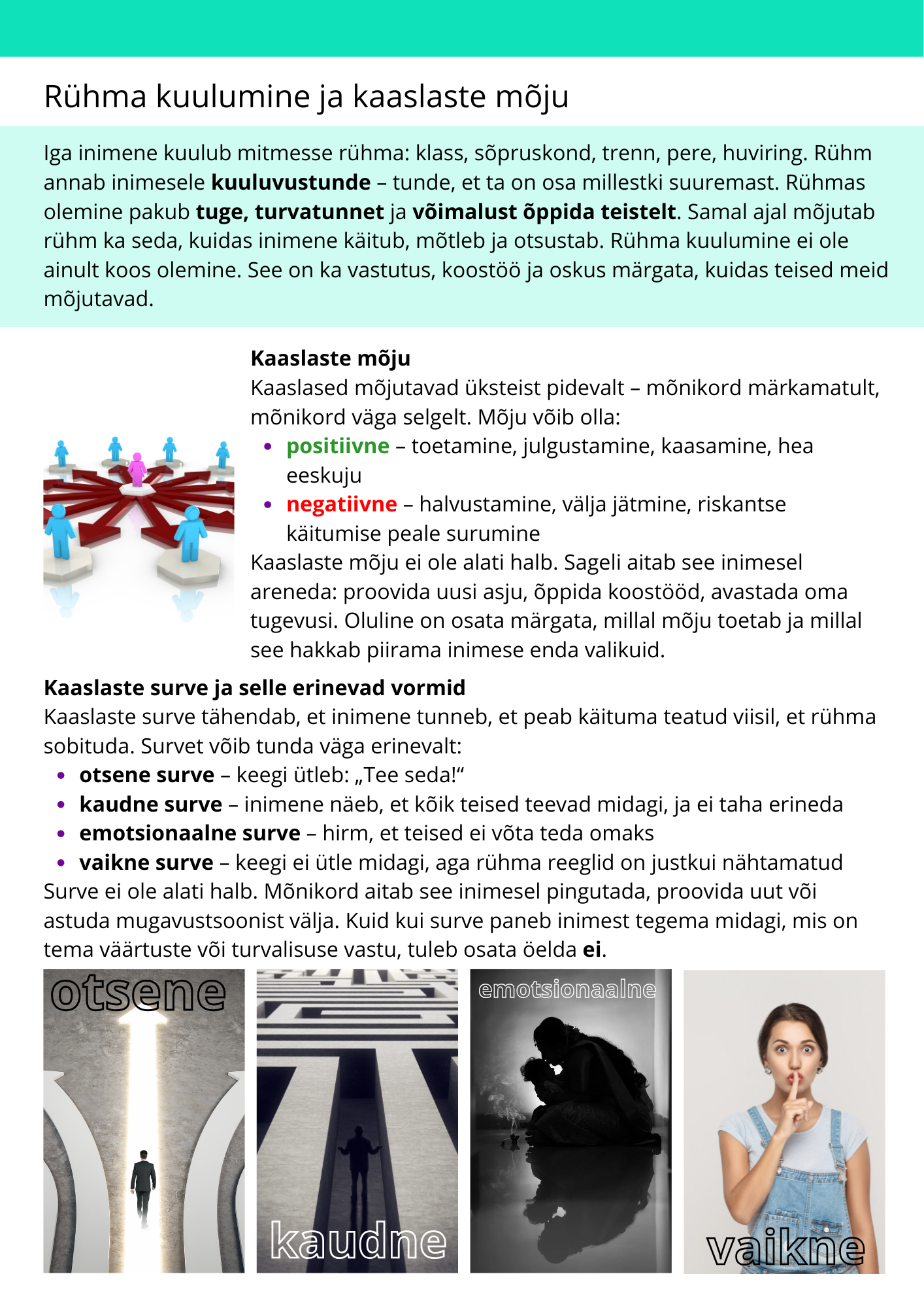 Rühma kuulumine ja kaaslaste mõju, mõisted, grupimäng.