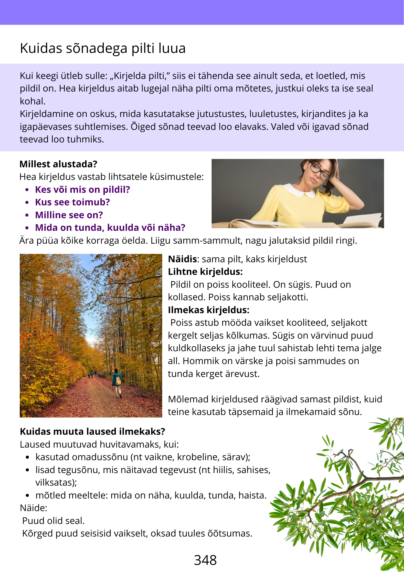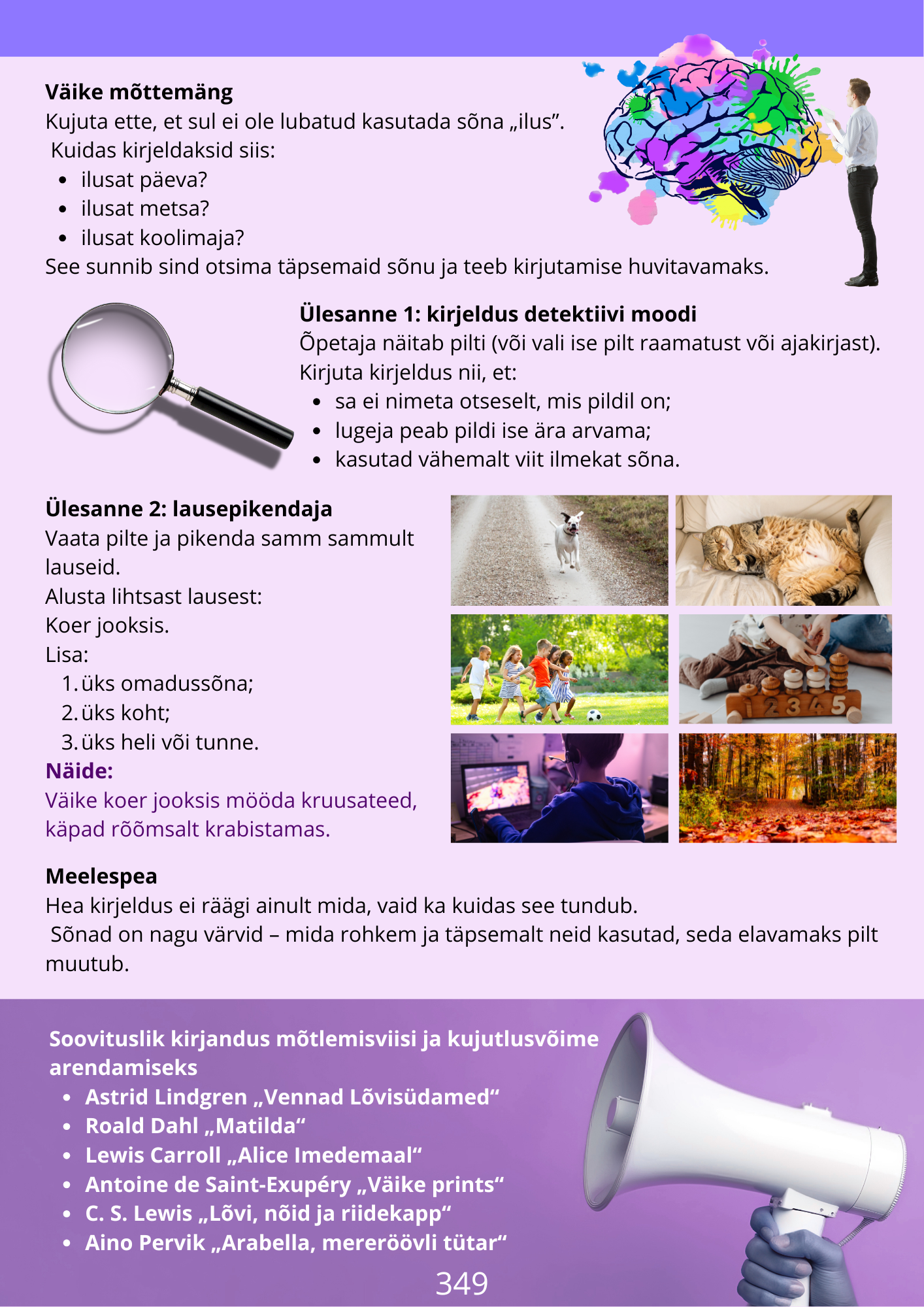 Kuidas sõnadega pilti luua, ülesanded, soovituslik kirjandus.