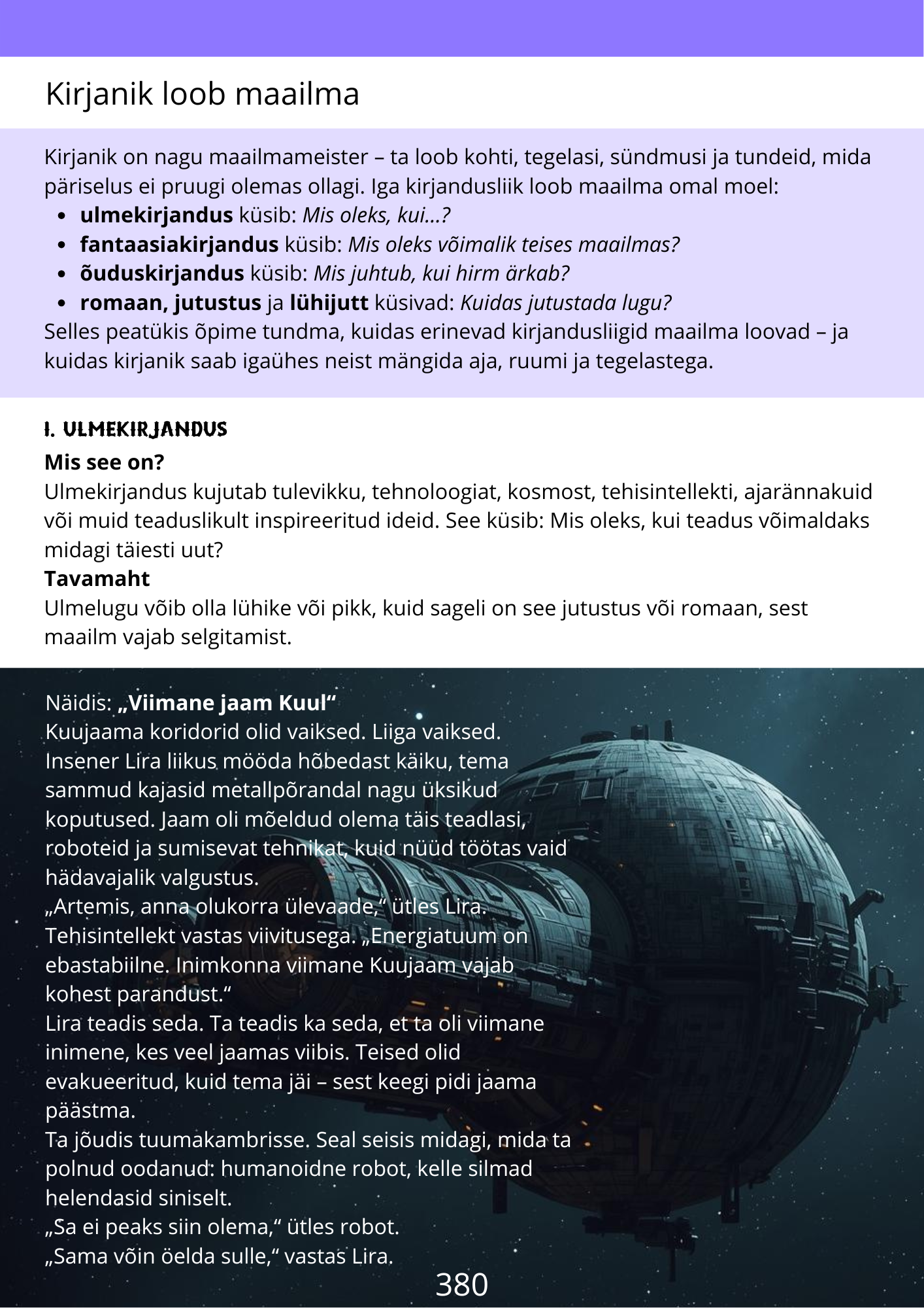 Kirjanik loob maailma, ulmekirjandus, fantaasiakirjandus, õuduskirjandus, romaan, jutustus, lühijutt, grupitöö ülesanne.