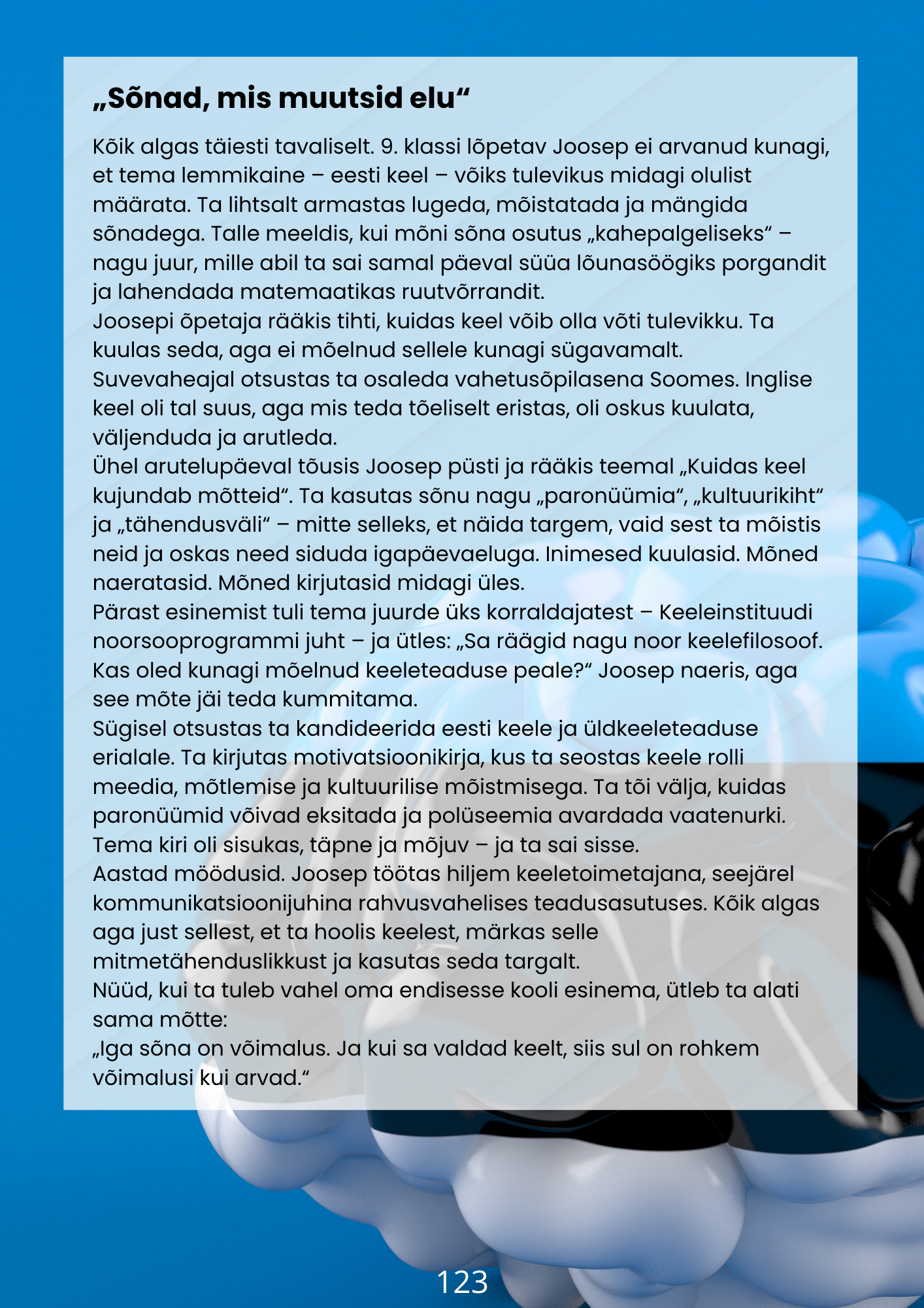 “Diferentseeritud tööraamat” 9.klassile on suurepärane abivahend lastele, kes õpivad eesti keelt. See on mõeldud rändelastele, lastele, kes ei ole sündinud eestikeelses keskkonnas, ja HEV õpilastele. Tööraamat vastab kõikidele RÕK ja E2 nõuetele. Need materjalid on tõepoolest ainulaadsed ja esmakordsed, kuna õpetamisel kasutatakse ainult eesti keelt. Töölehed on koostatud nii, et õpetamisel ei ole vaja kasutada ühtegi teist keelt. Pildid ja ülesanded aitavad lastel õppida eesti keelt nii iseseisvalt kui ka tunnis, kui õpetaja ei saa igal sammul aidata. See on väärtuslik ressurss, mis toetab lapsi nende keeleõppe teekonnal ja aitab neil edukalt omandada vajalikud teadmised ja oskused. Lisaks on need töölehed koostatud nii, et neid on kerge järgida nii õpetajal kui ka õpilasel, tagades sujuva ja tõhusa õppeprotsessi.