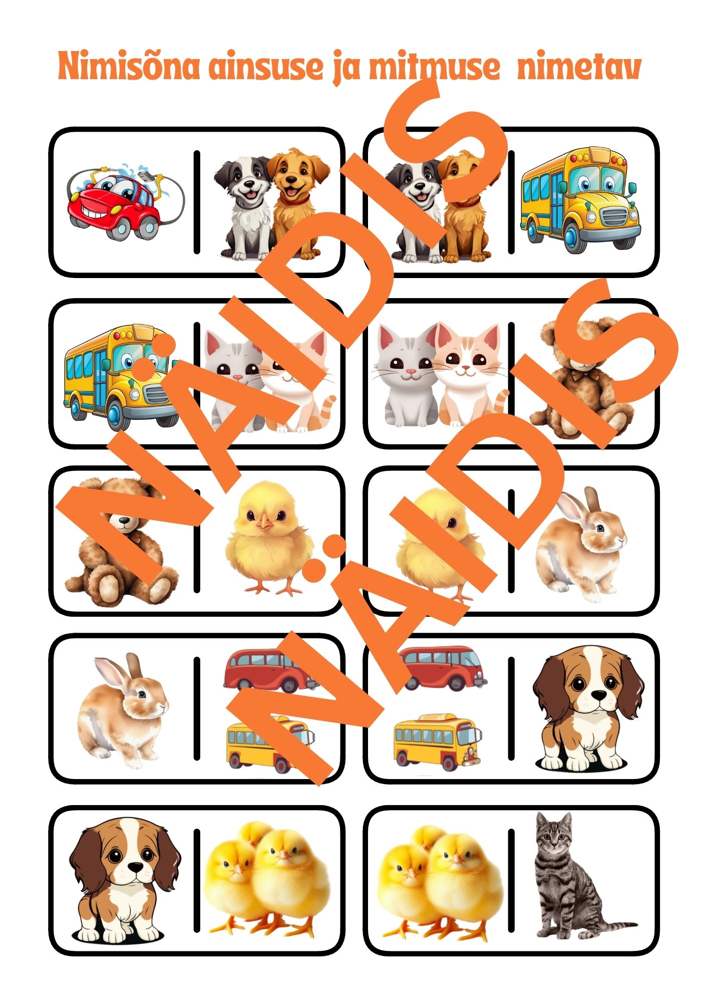 Doominomäng nimisõna ainsuse ja mitmuse sõnavormide harjutamiseks.
