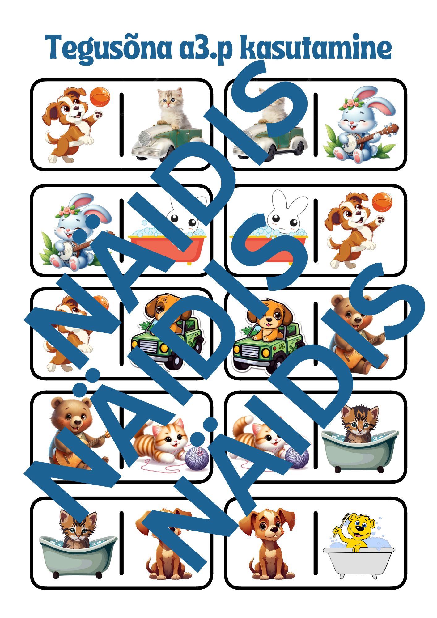 Doominomäng tegusõna ainsuse 3.pöörde sõnavormide harjutamiseks.