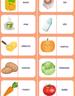 Kokku on 30 toitu (on puuvilju, köögivilju, toite, jooke).