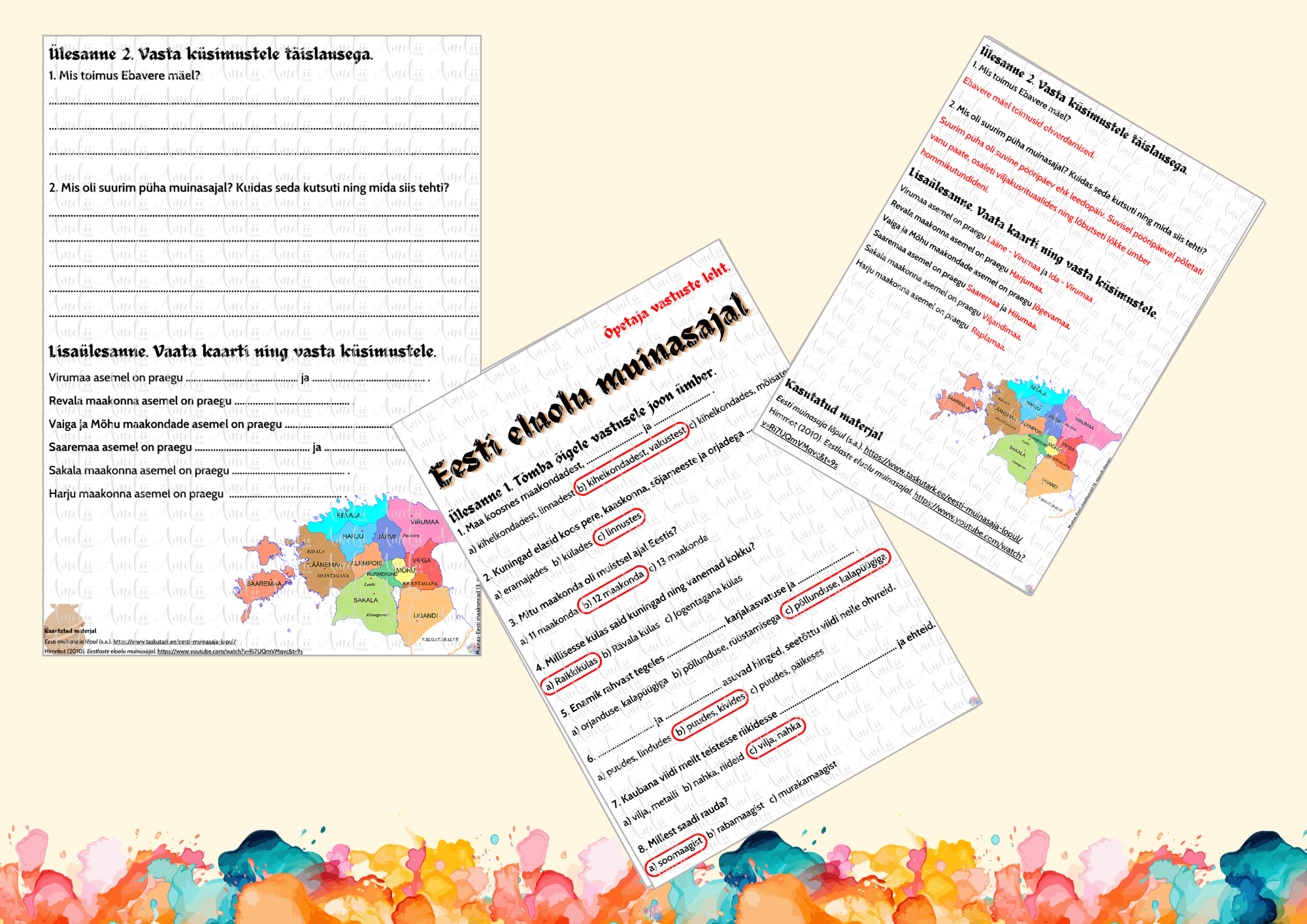 „Eesti eluolu muinasajal“ on mitmekülgne tööleht, mis aitab õpilastel kinnistada õpitut läbi erinevate ülesannete. Tööleht sisaldab valikvastustega küsimusi, avatud küsimusi ning kaardiga ülesannet.