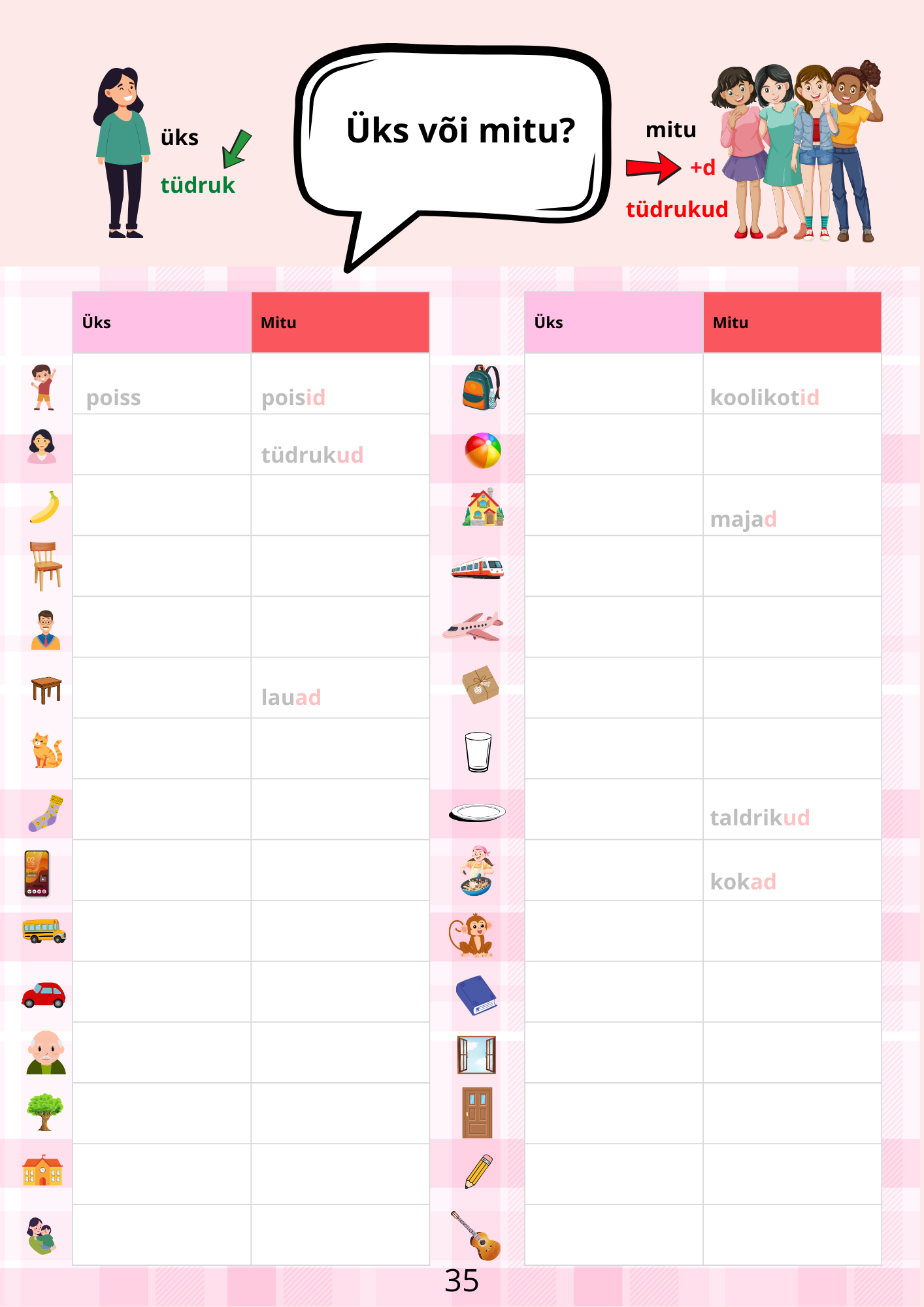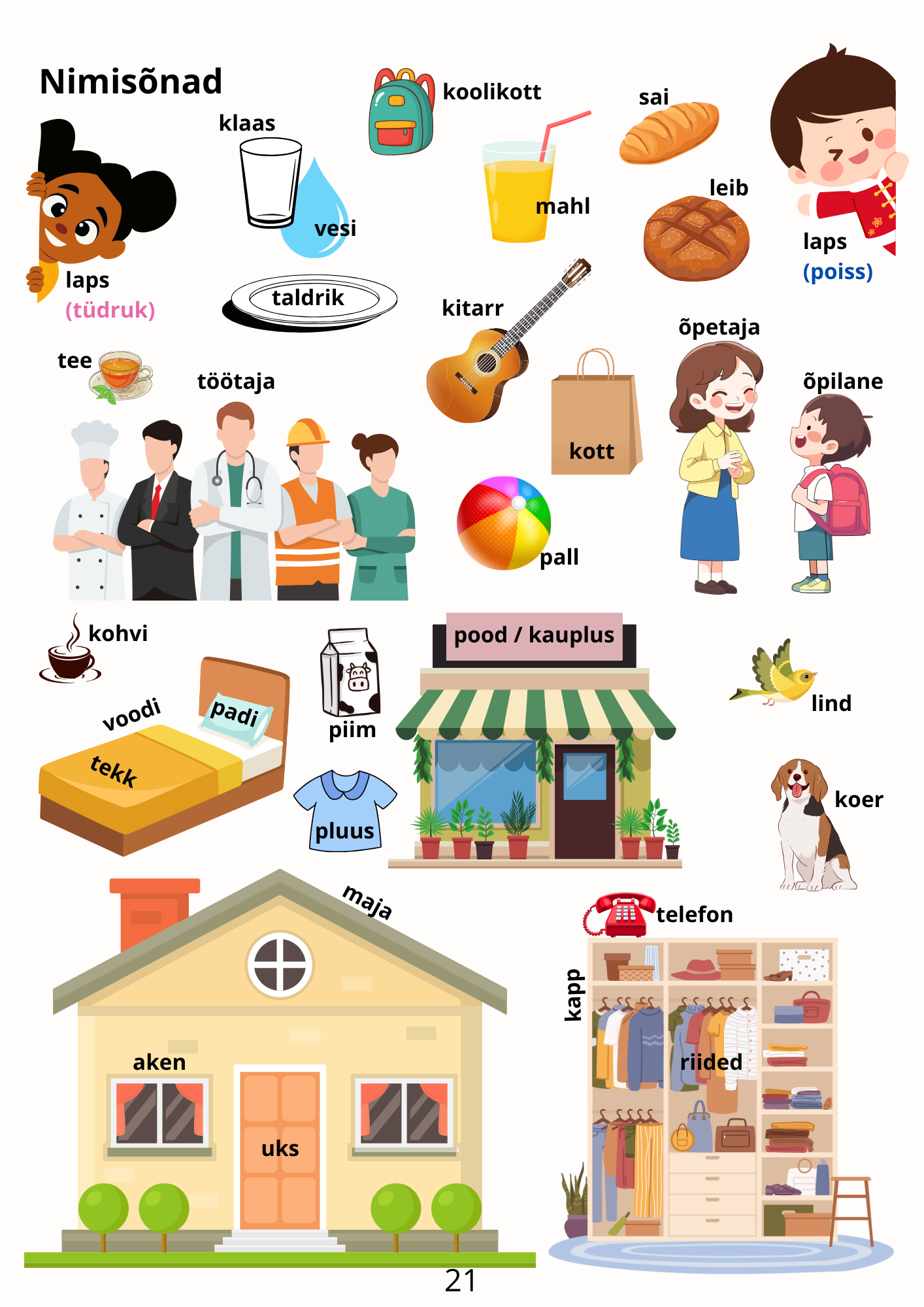 Materjal sobib suurepäraselt muukeelsetele õpilastele, täiskasvanutele ja teistele keeleõppijatele, kes vajavad lihtsustatud, diferentseeritud ja visuaalselt toetatud keeleõpet. Õppematerjal ei eelda teise keele oskust – kõik on arusaadav piltide, korduste ja lihtsate ülesannete kaudu.