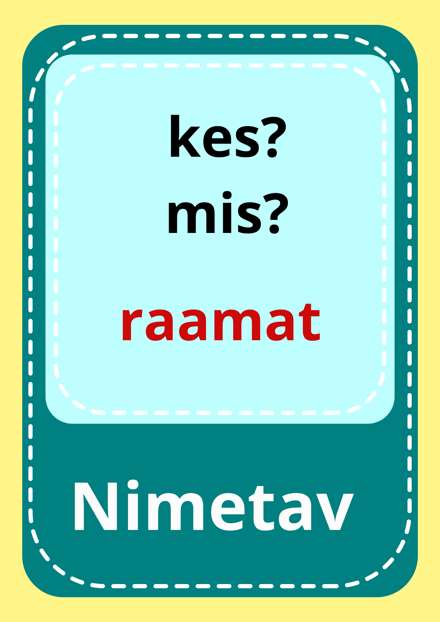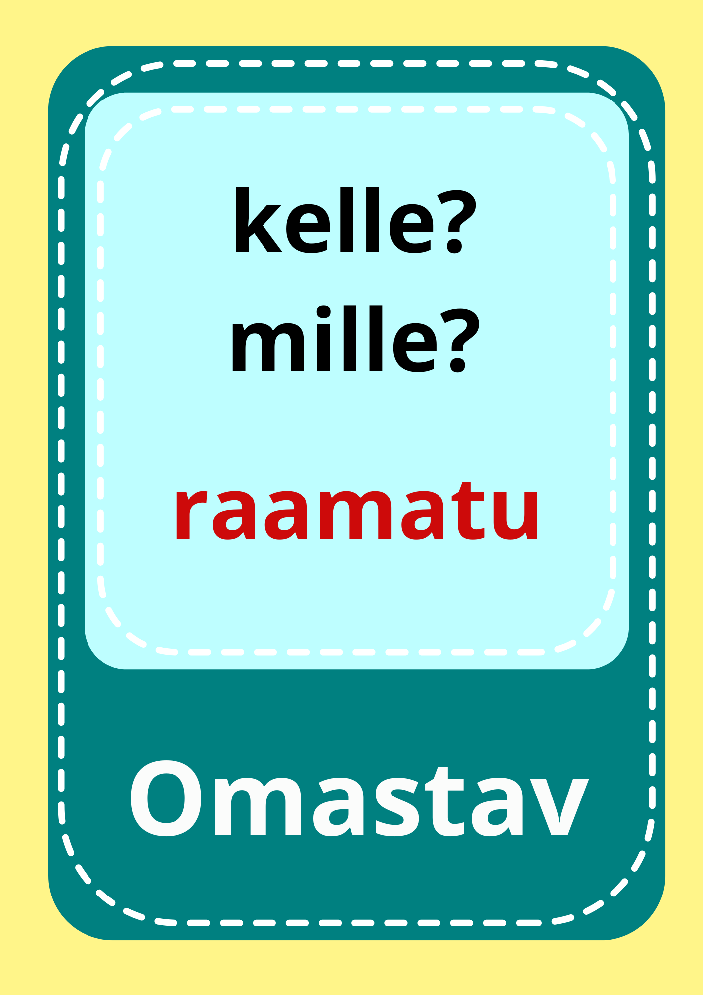- Esikülg: käände küsimus + näidissõna (nt kes? mis? – raamat), mis aitab õppijal mõista käändelõpu loogikat ja kasutust.