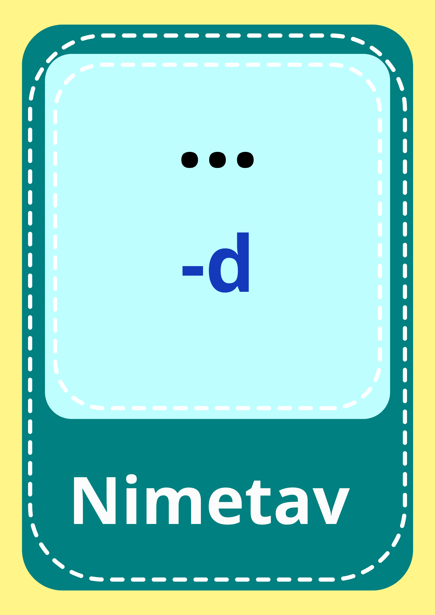 - Tagakülg: käände nimi + sõnalõpp (nt Nimetav – -d), mis suunab õppijat küsimust ise meenutama ja tugevdab pikaajalist mälu.
