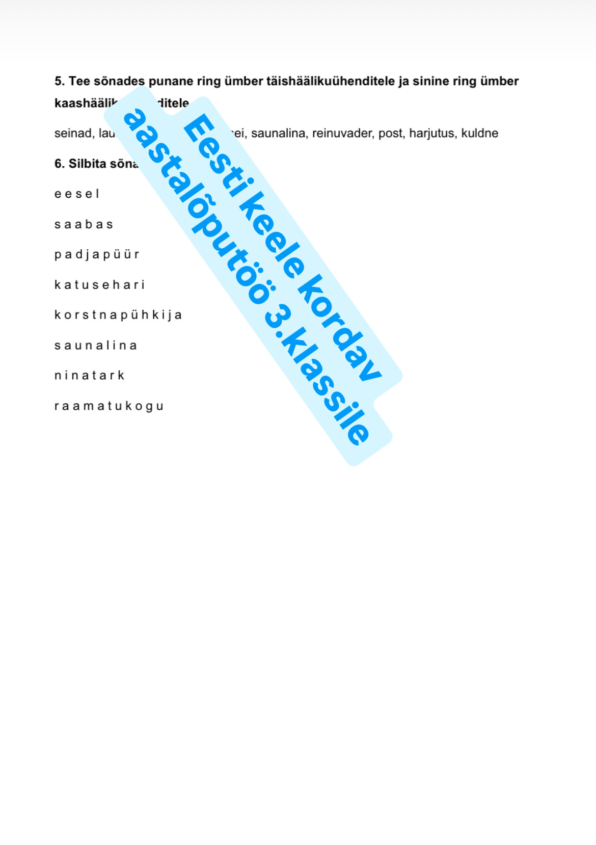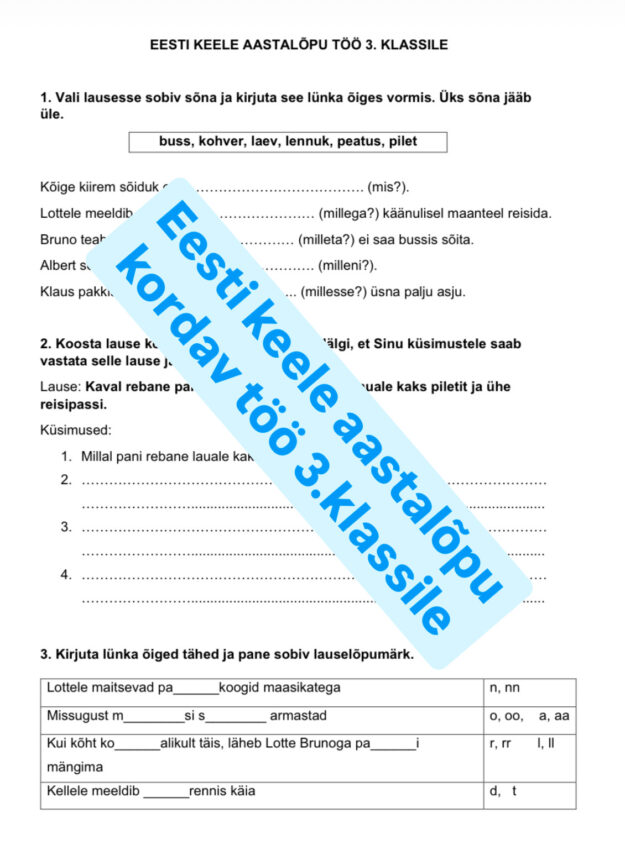 Eesti keele kordav aastalõputöö 3.klassile. Sobib hästi 3.klassiga aastalõputööks kordamiseks.