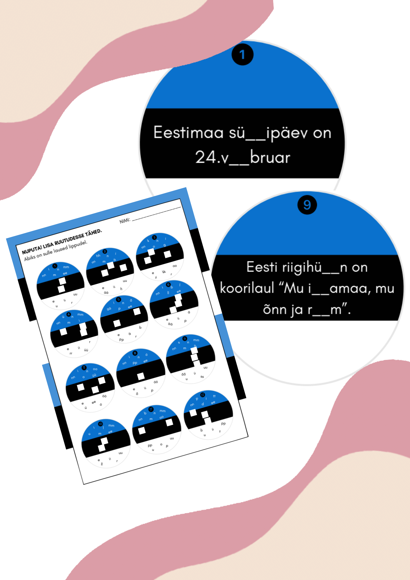 Lapsed uurivad koos nendele antud töölehega lauseid, täidavad abivahendi abil lüngad (ruudud) ja saavad teada fakte Eesti kohta!