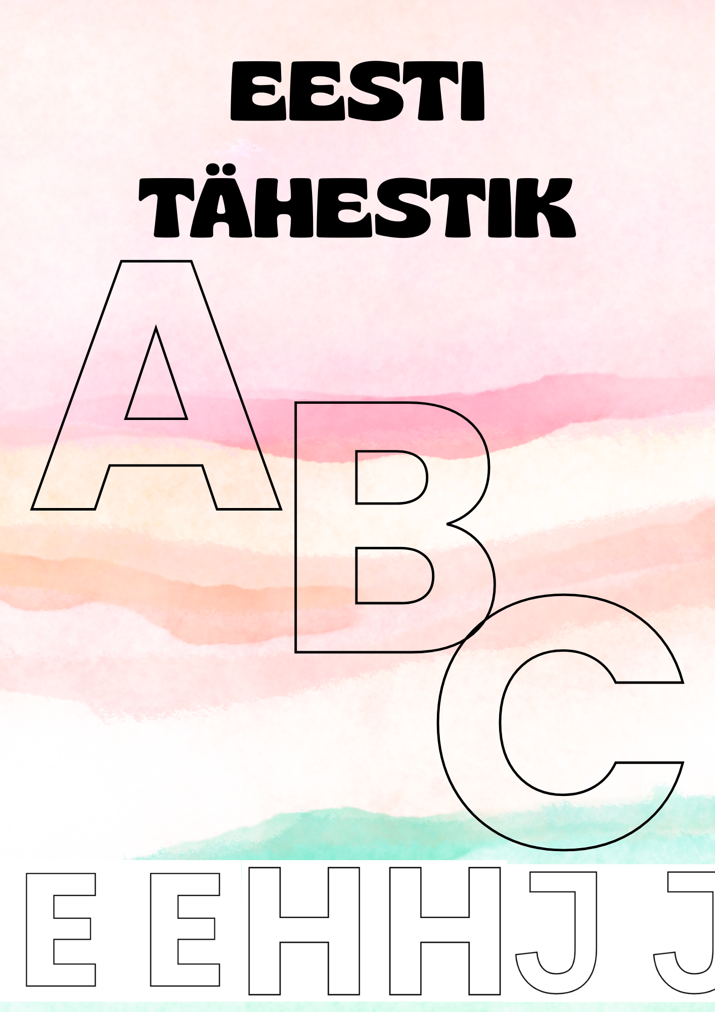 Igal lehel on kaks kontuuridega tähte, mis sobivad hästi värvilistele paberitele printimiseks või lastele täheõppeks, kus lapsed saavad tähti erinevaid tehnikaid kasutades kaunistada.