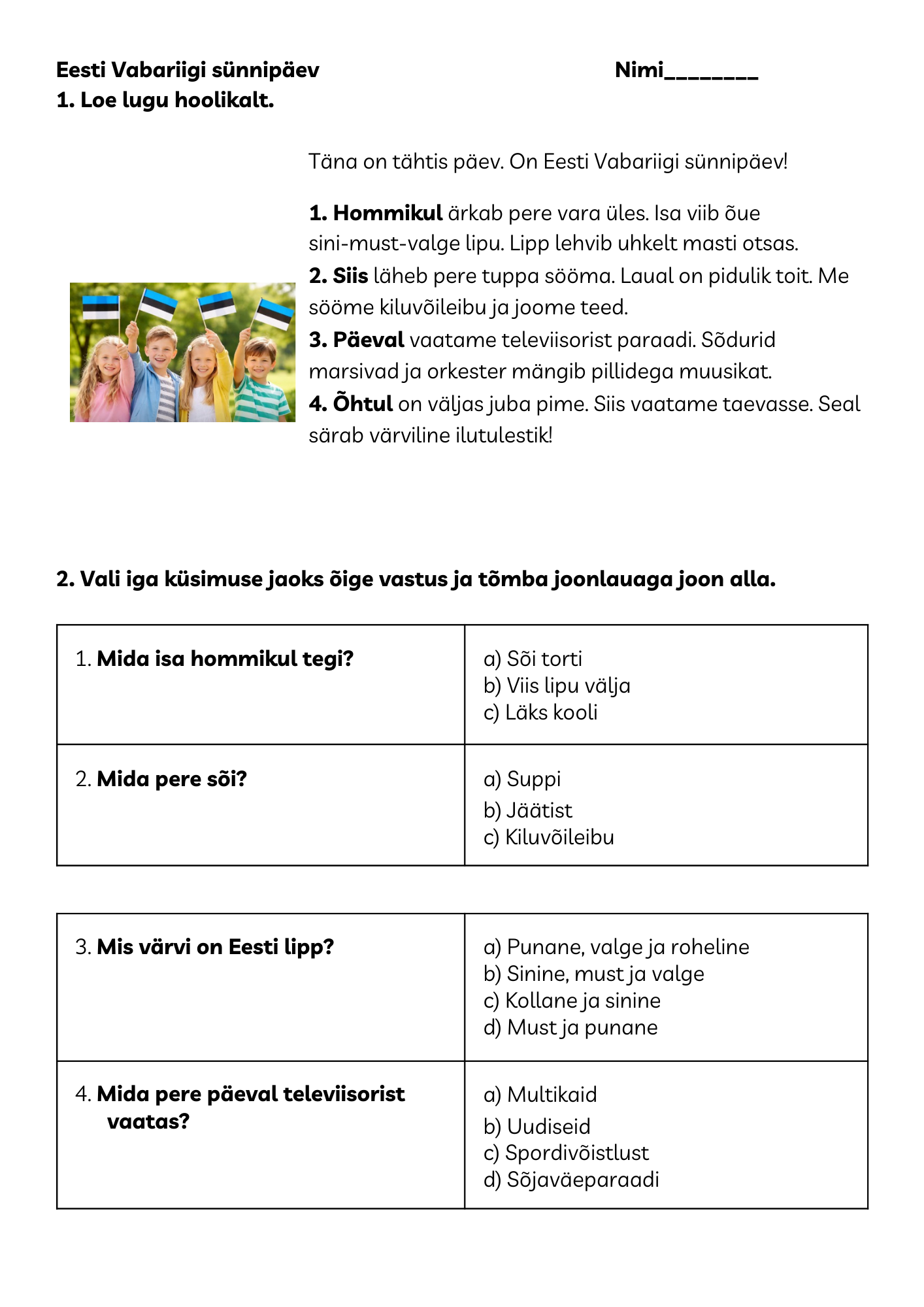 Loe. Vasta küsimustele.