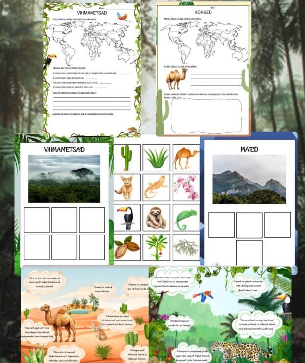 3xA4 töölehte kõrbete, vihmametsade ja polaaralade kohta.