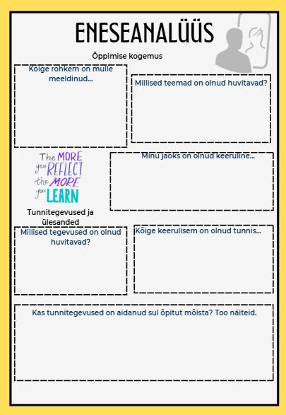 Kategooriad: õppimise kogemus, tunnitegevused ja ülesanded, õpetaja, ettepanekud.