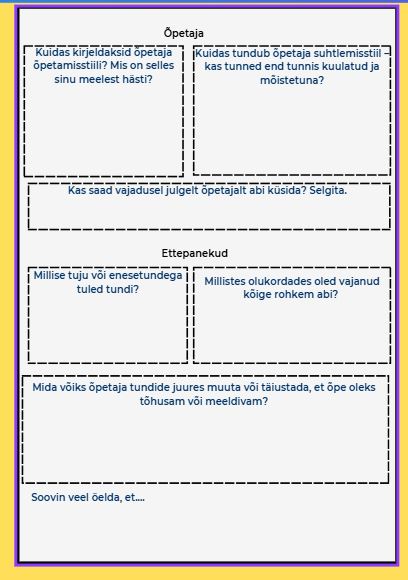 Mul on sellel aastal uued õpilased ning soovisin trimestri lõpus saada tagasisidet, et kuidas õpilased meie omavahelist koostööd hindavad.