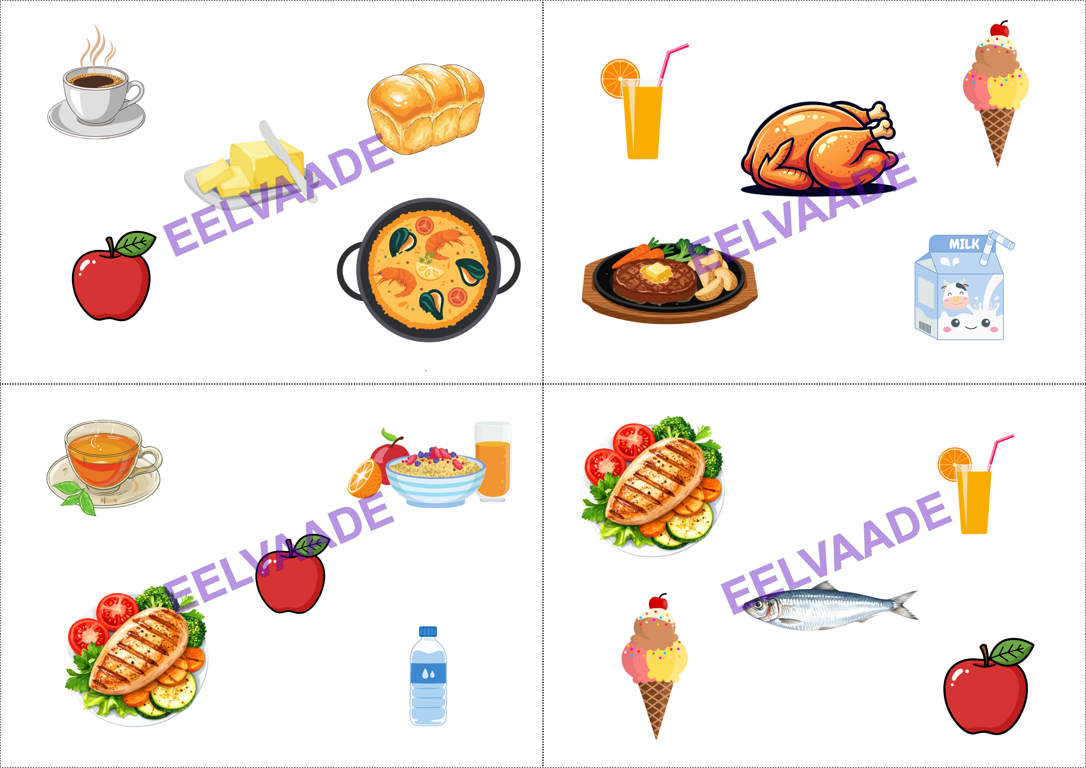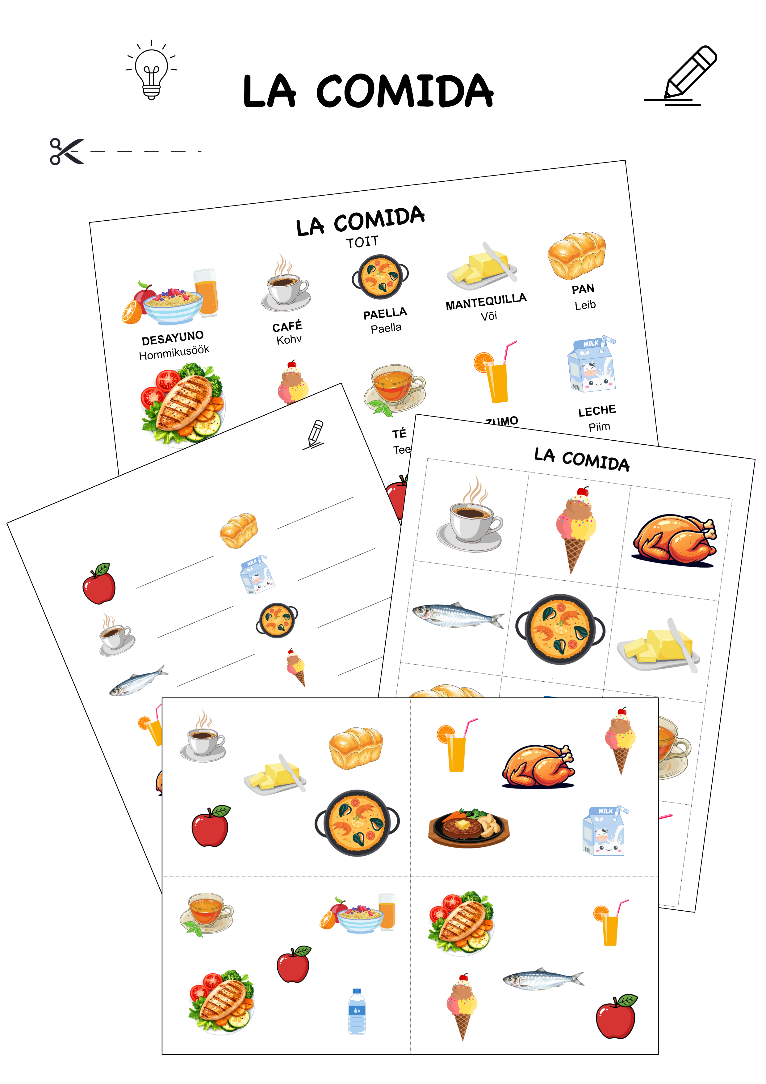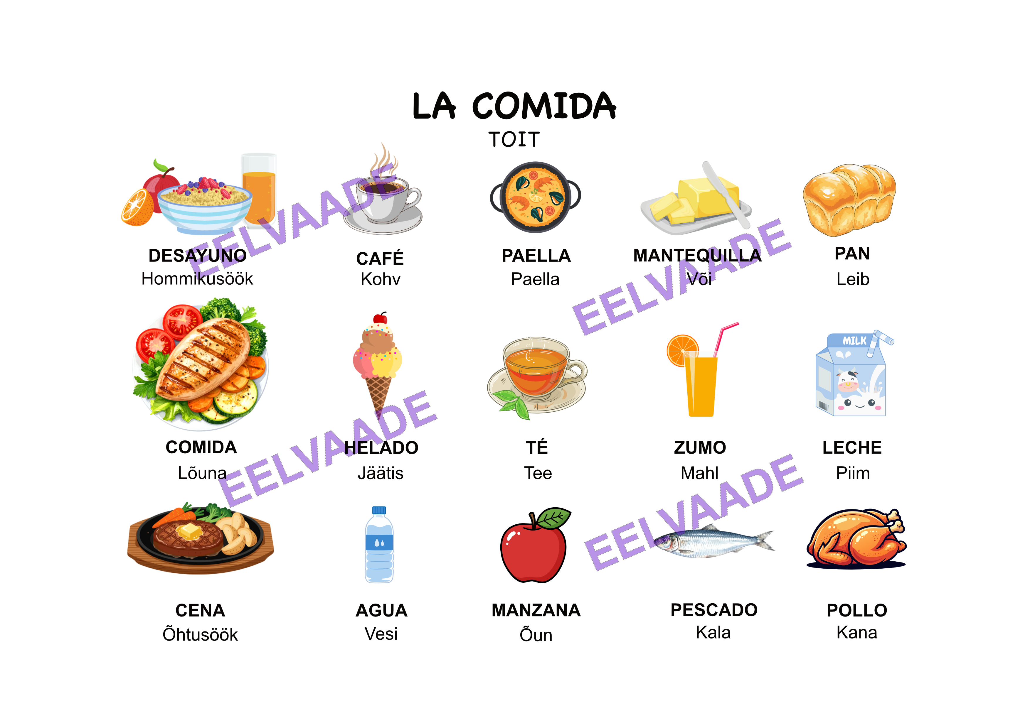 1. Erinevad toidud hispaania ja eesti keeles