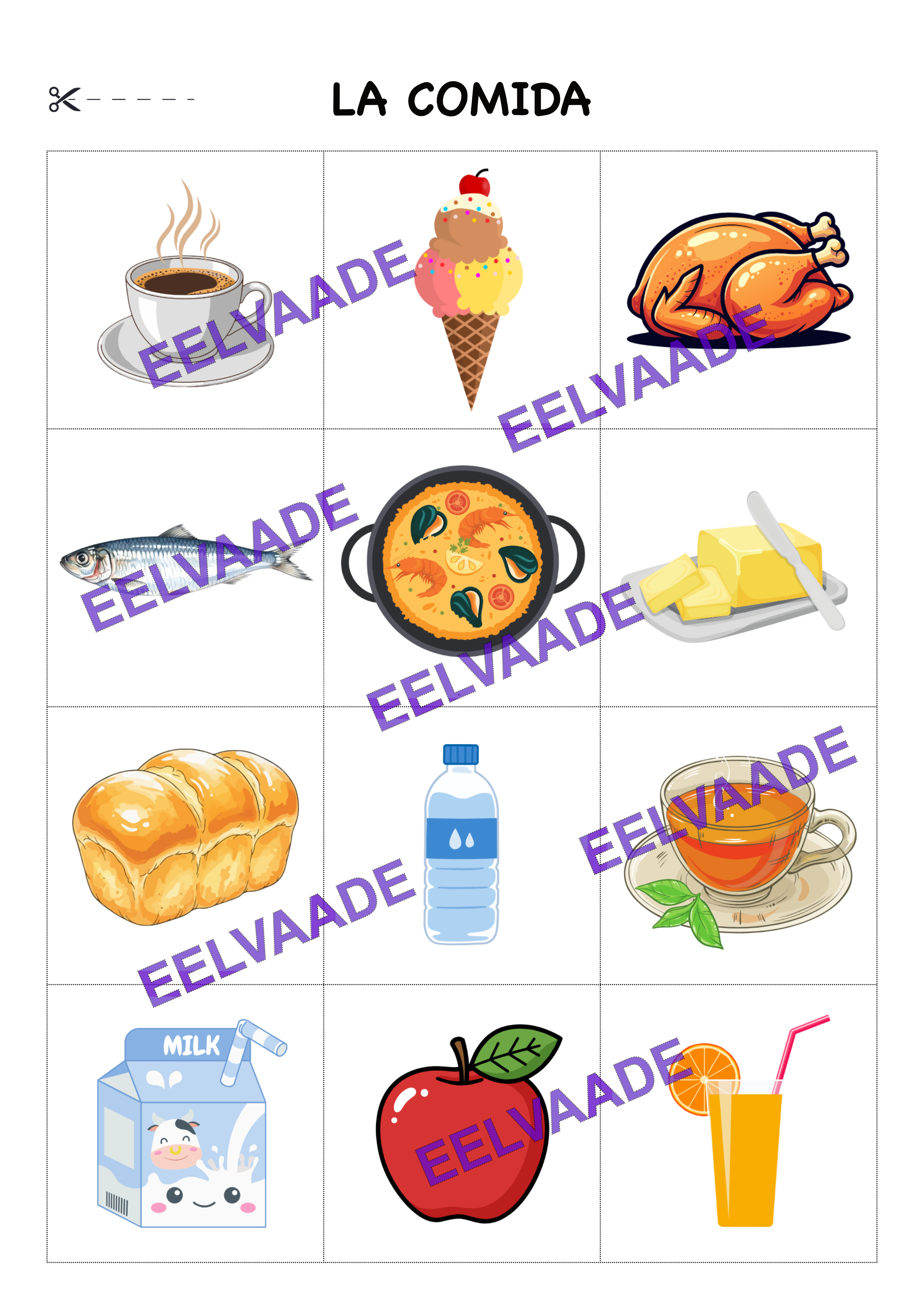 2. Tegevusleht kus kõik on eraldi ruutudes ja saab välja lõigata ning laiali jagada.