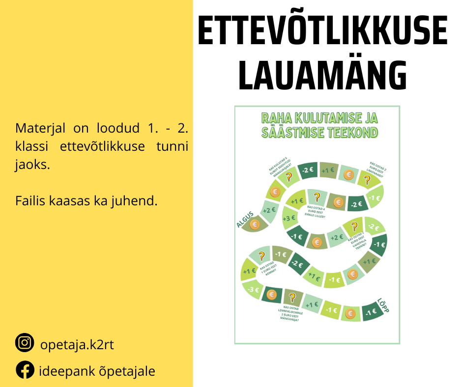 Lauamäng õpetab lastele elulisi valikuid – me teenime raha ja kulutame. Mõned kulutused on vältimatud, teised valikulised.