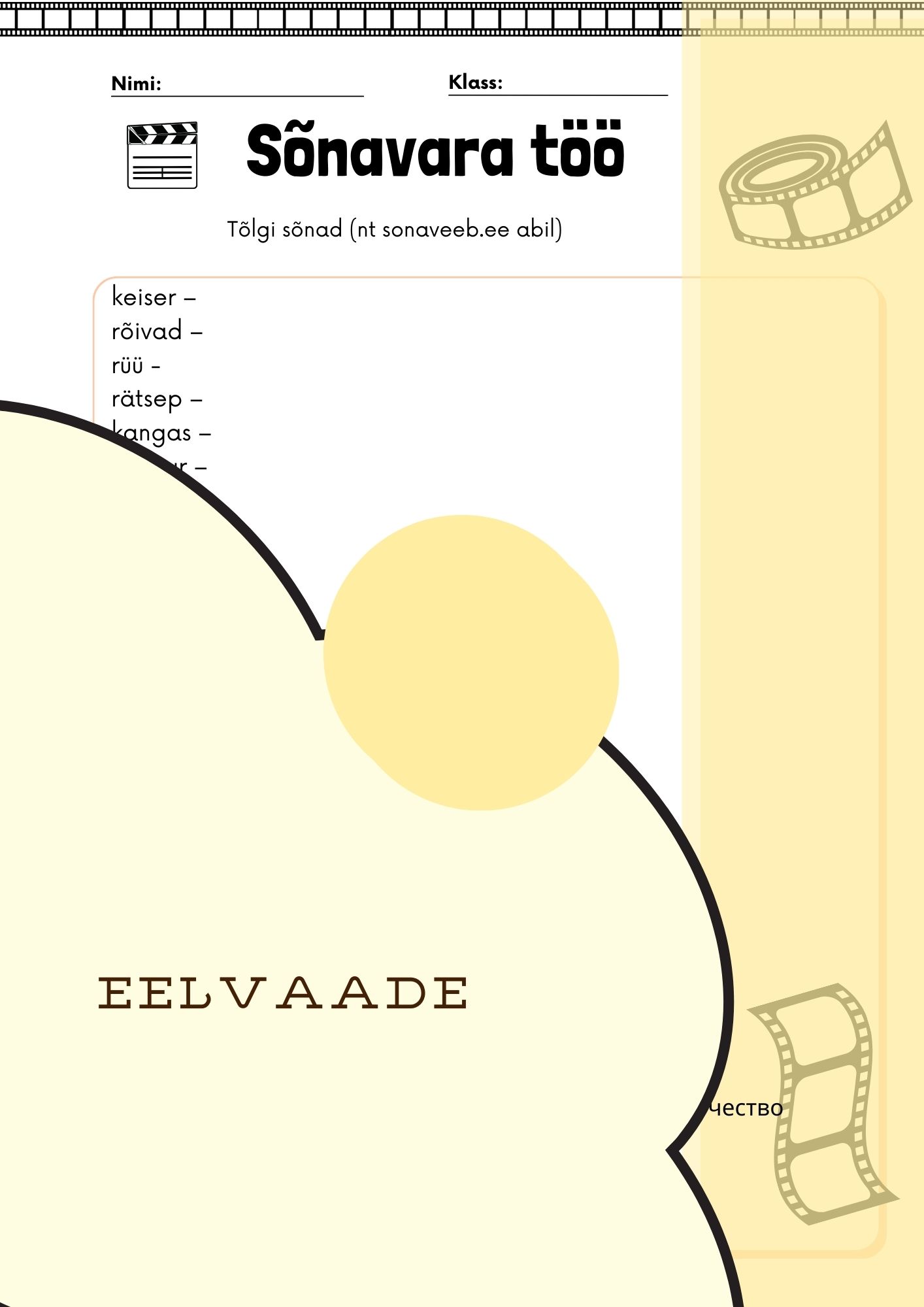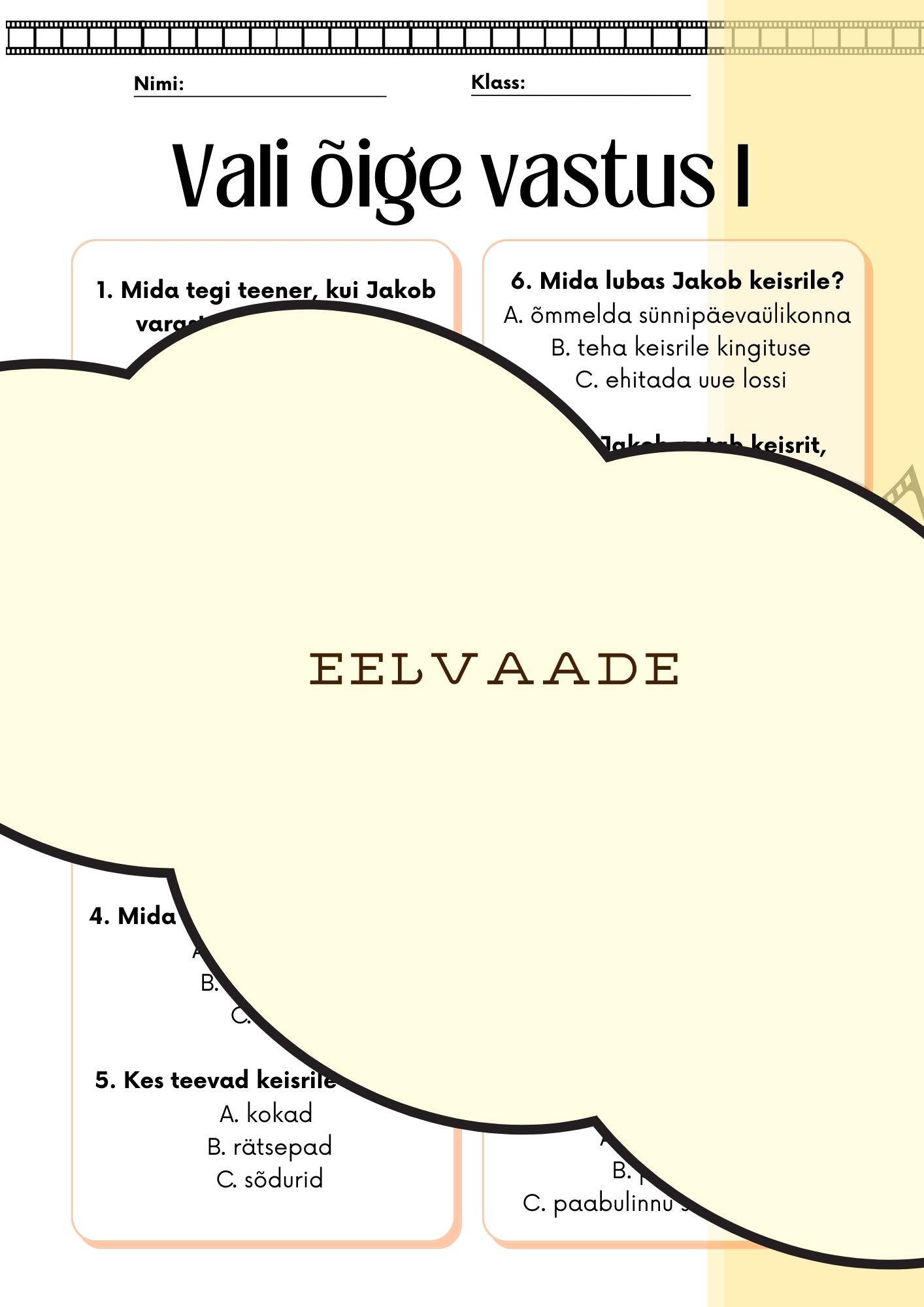 Film „Keisri uued rõivad“ töölehed (4.–6. klass, eesti keel teise keelena A1–A2)