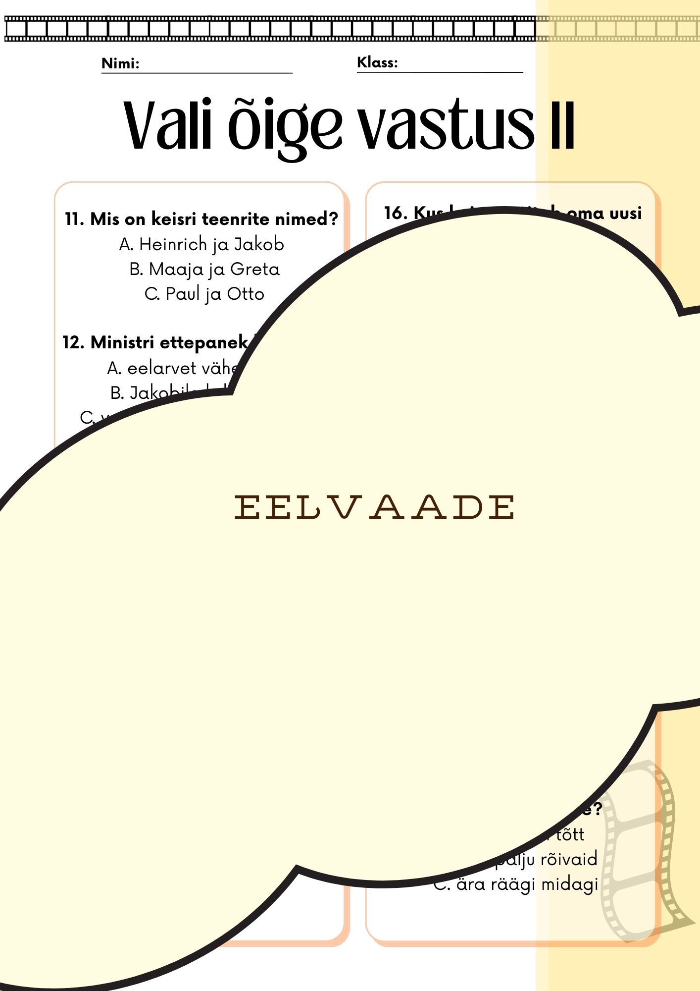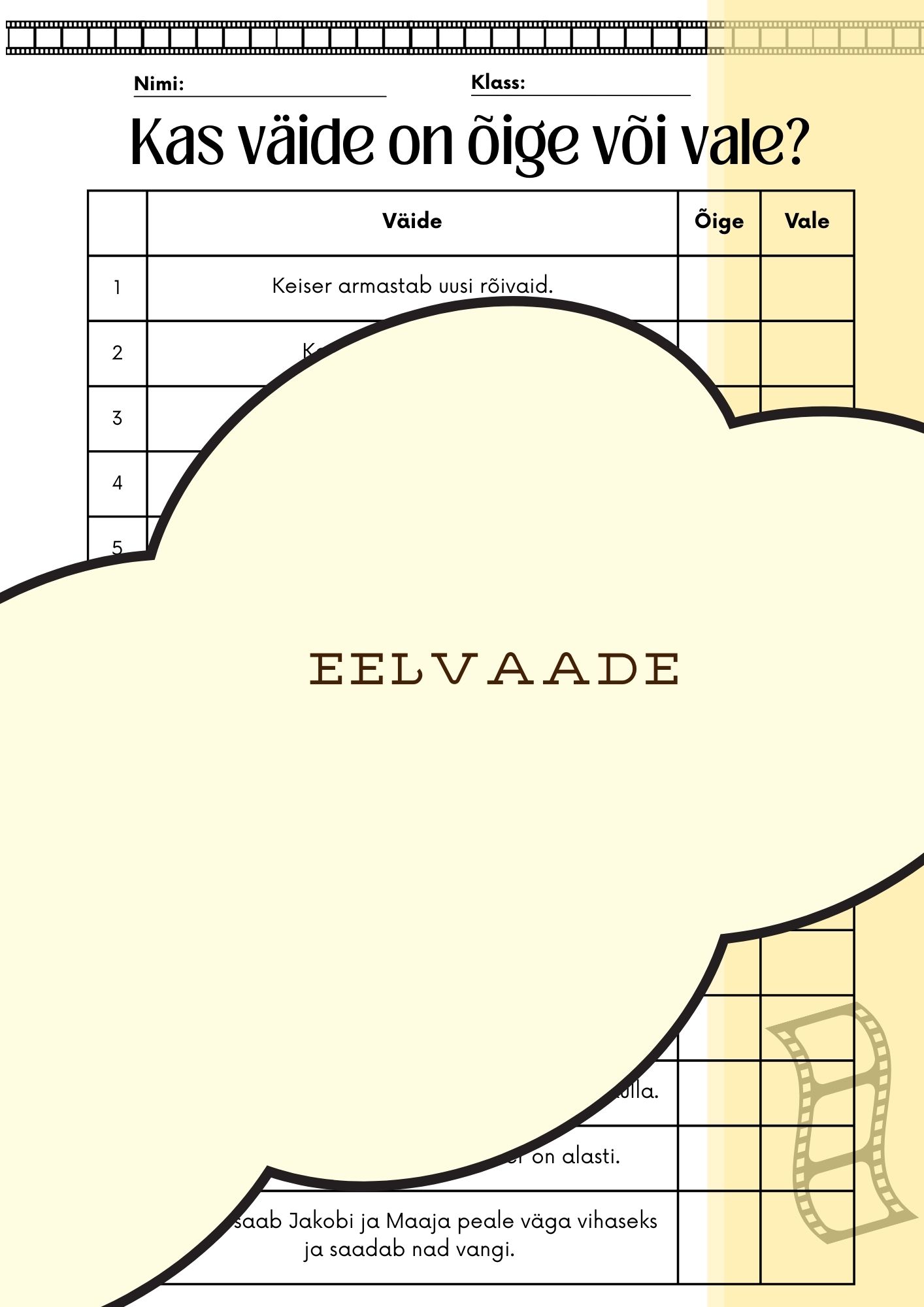 🎬 Film „Keisri uued rõivad“ – töölehed