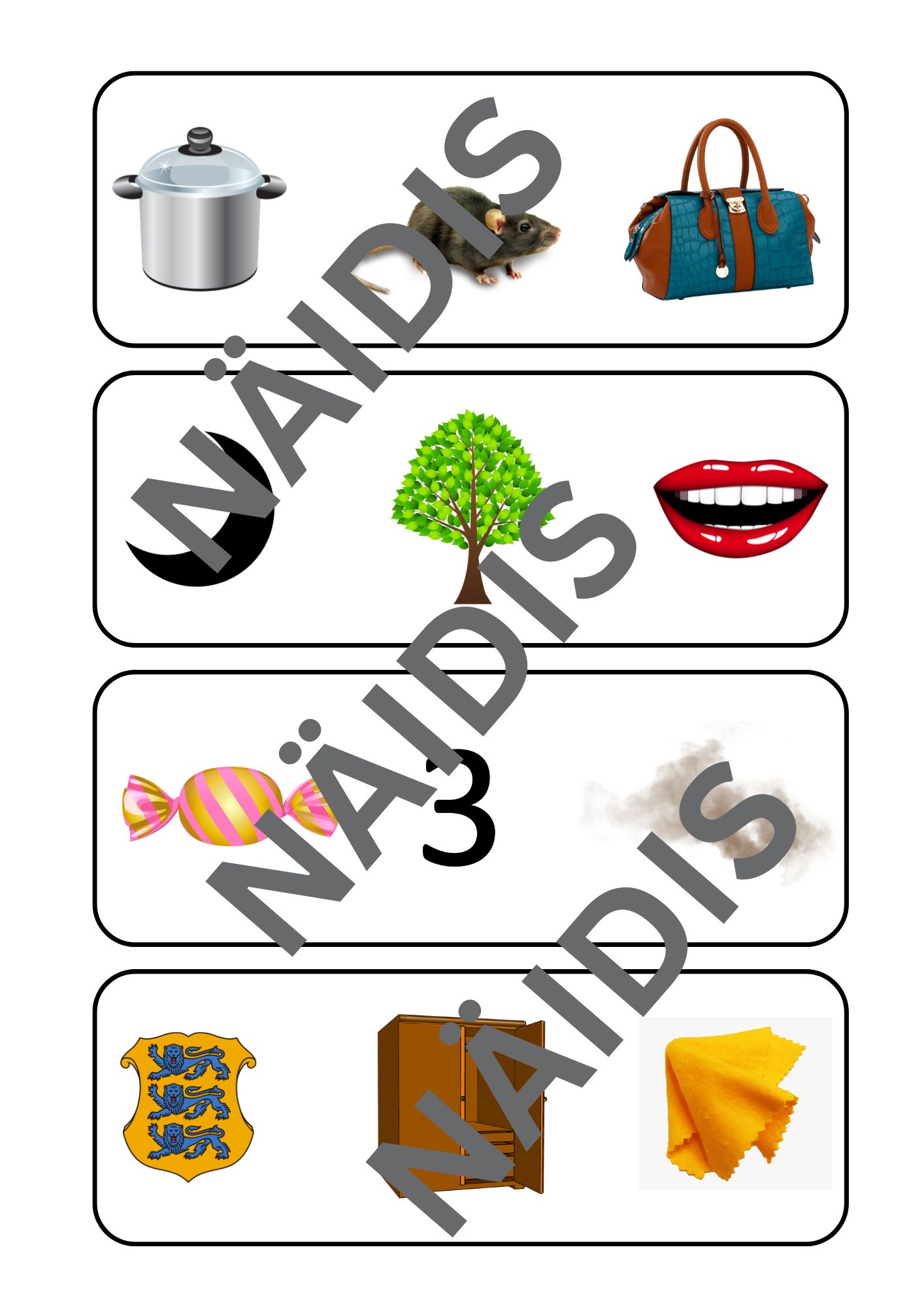 Materjali saab kasutada nii foneemikuulmise testimiseks kui arendamiseks, samuti eesti keele õppes. Failis on 31 sõnarida (8 lehte).