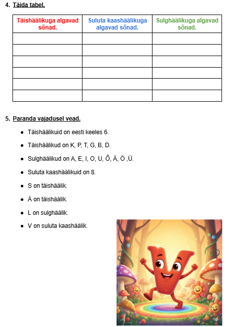 Tööleht eesti keele 3 häälikurühma õppimiseks, kinnistamiseks või kordamiseks.