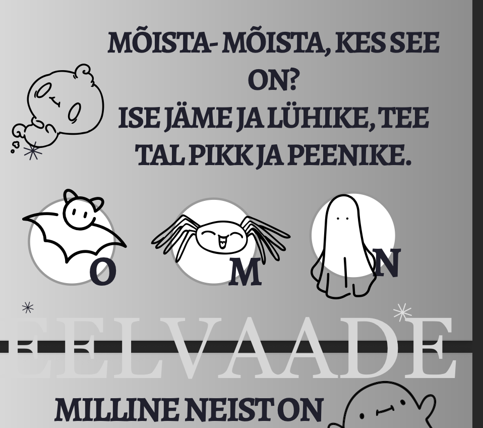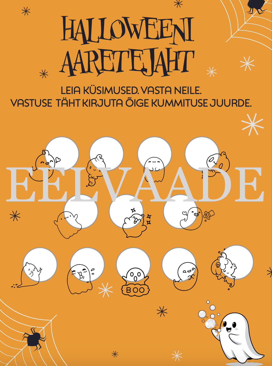 Halloweeniks mõeldud aaretejaht 1.klasssile. Failis on nii värviline kui must-valge variant.