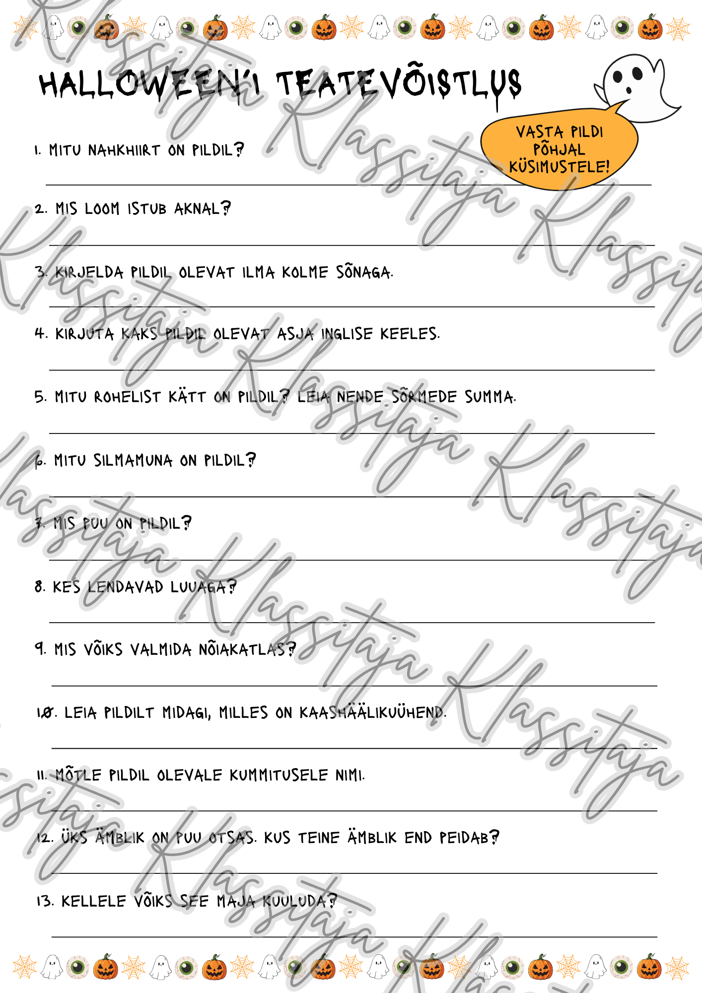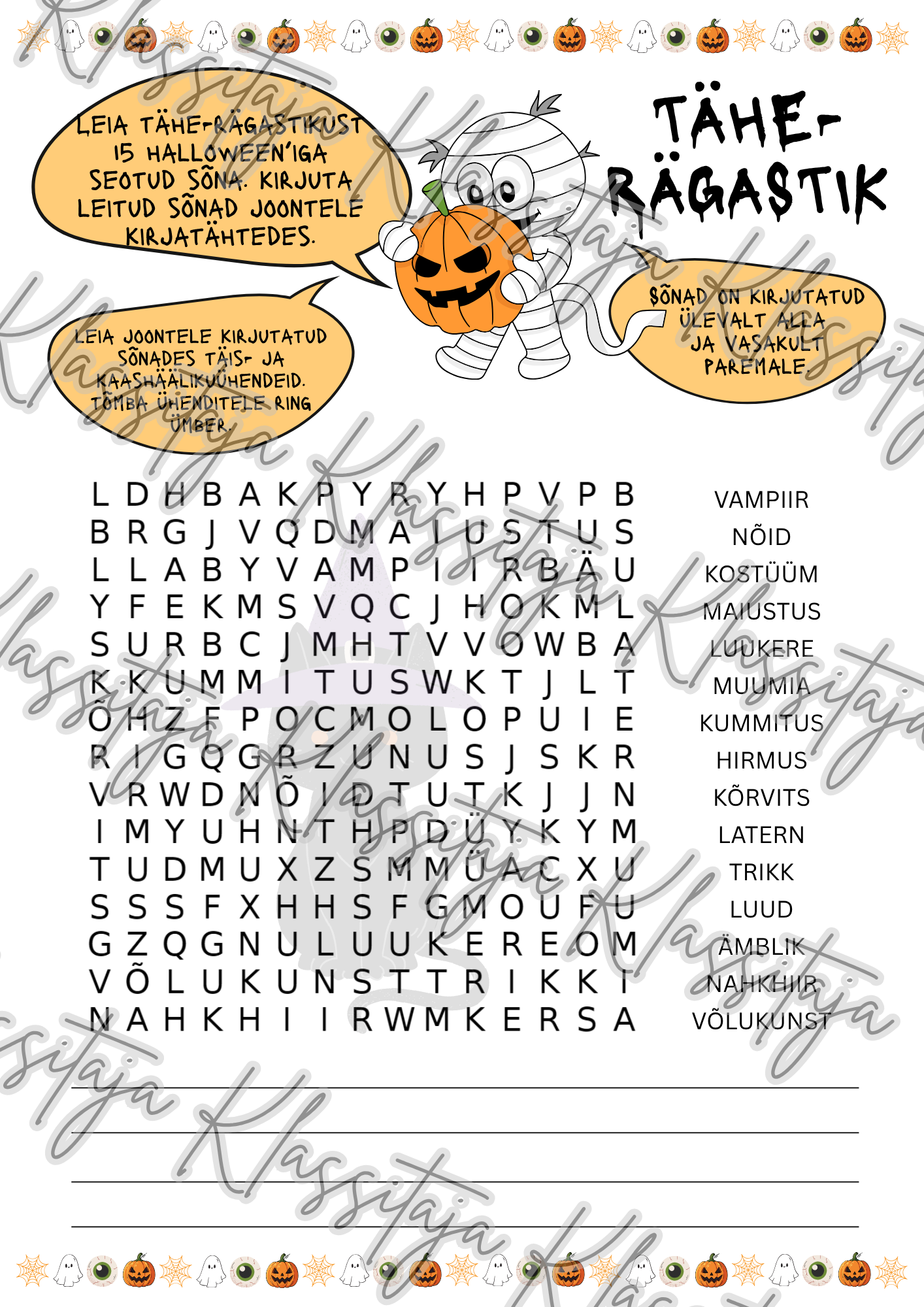 10 põnevat ja mängulist halloween’i-teemalist töölehte algklassidele.