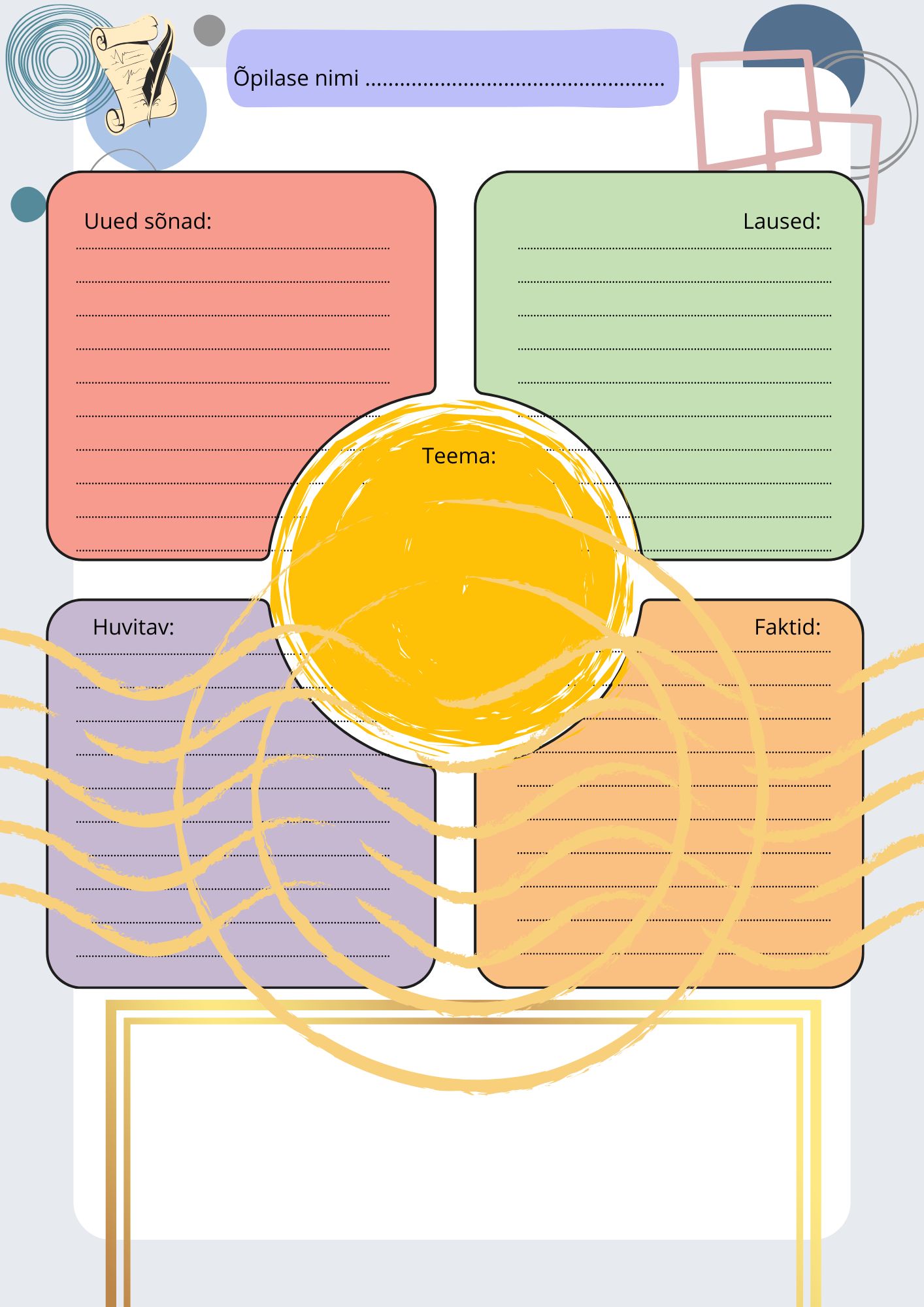 Rõhutan kujunduse olulisust, sest õpilasel peab kujunema rutiin ning töölehe kujundus toetab seda tunnist tundi. Lisan müüki ka töölehe tühja blanketi ja detailid, et saaksite ise oma sisu luua.