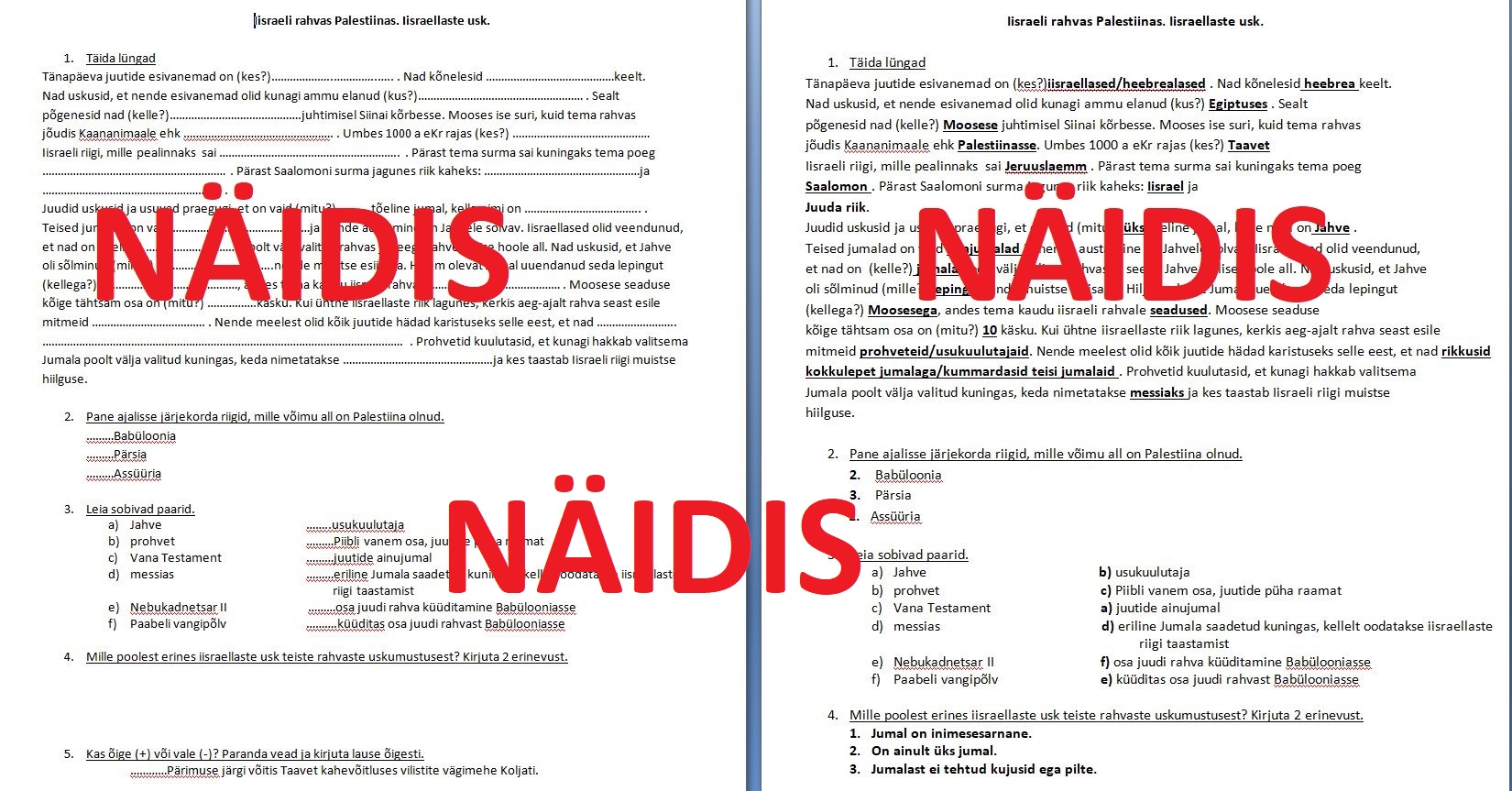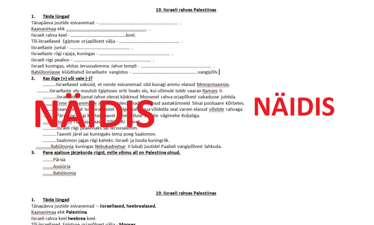 19. peatükk 6. kl ajalooõpikus Iisraeli rahvas Palestiinas töölehte (täida lüngad, väitlaused, järjesta) saab kasutada uue teema õppimisel, kordamisel või hindamisel.