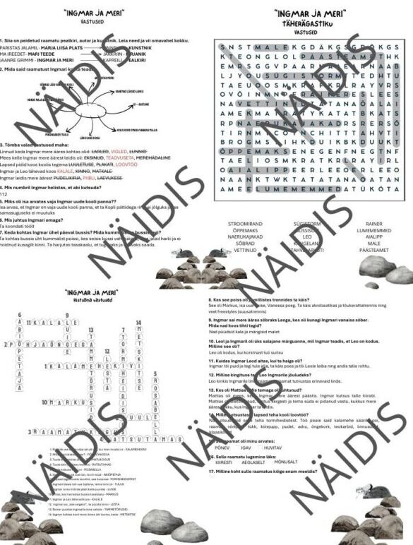 Sisaldab töölehte vastustega, ristsõna vastustega ja täherägastikku vastustega.