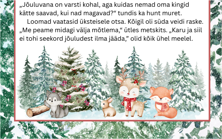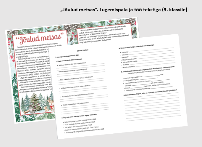 “Jõulud metsas”, lugemispala ja ülesanded tööks tekstiga (3. klassile).