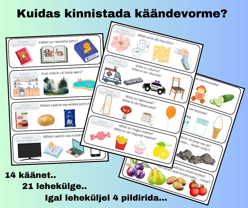 Oi kui keeruline on olnud suhteliselt algaja eripedagoogina leida võimalusi, kuidas lastes mingit kindlat käändevormi kinnistada ja sobivas lauses kasutada.. ühtlasi uurida, millise käändevormi kasutamine on keeruline ja millele peaks edaspidi rohkem rõhku pöörama (st see oskus ei ole mul veel automatiseerunud).