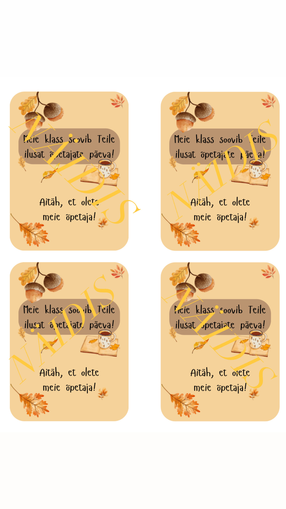 KAARDID ÕPETAJATELE ÕPETAJATE PÄEVA PUHUL kogus