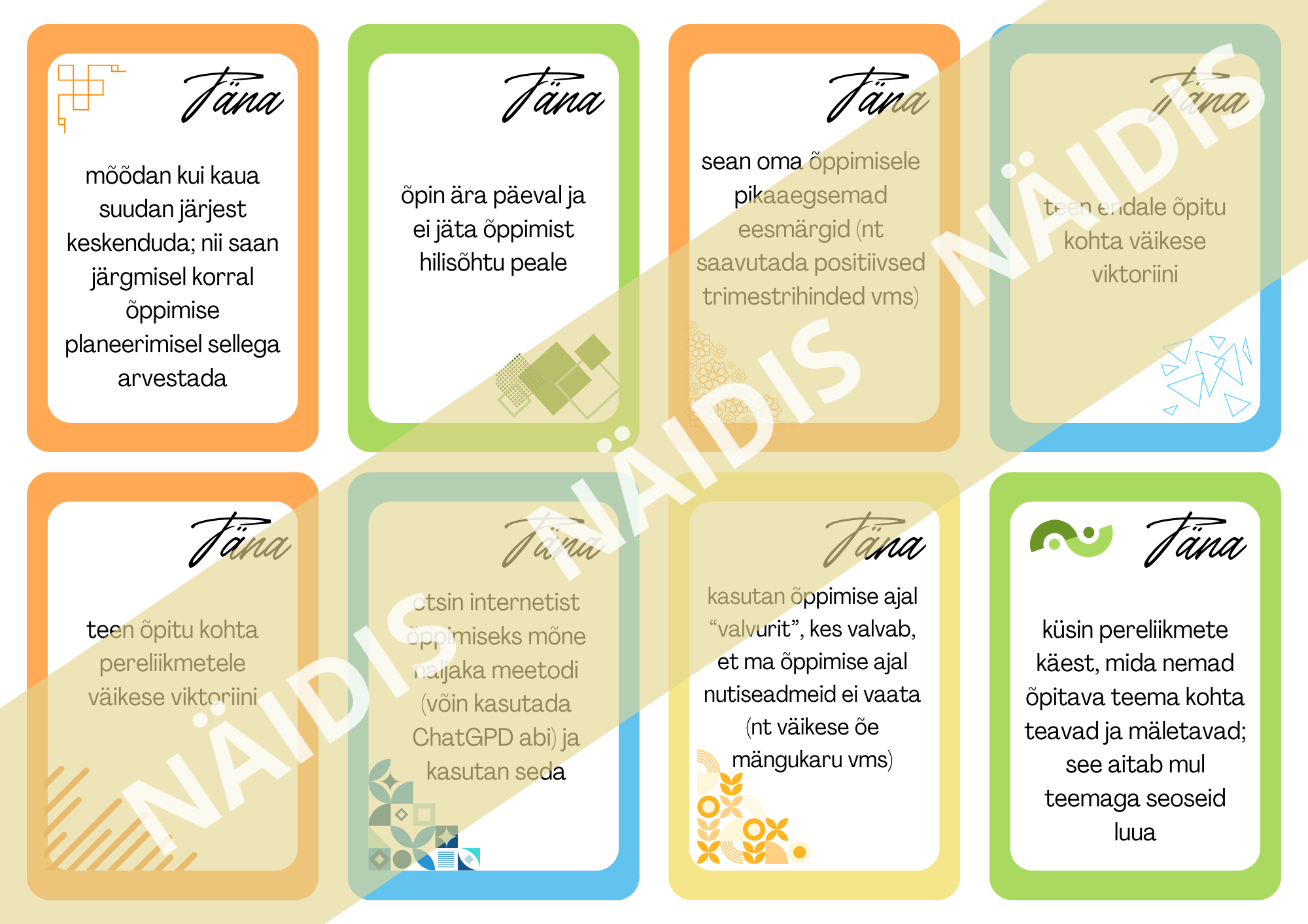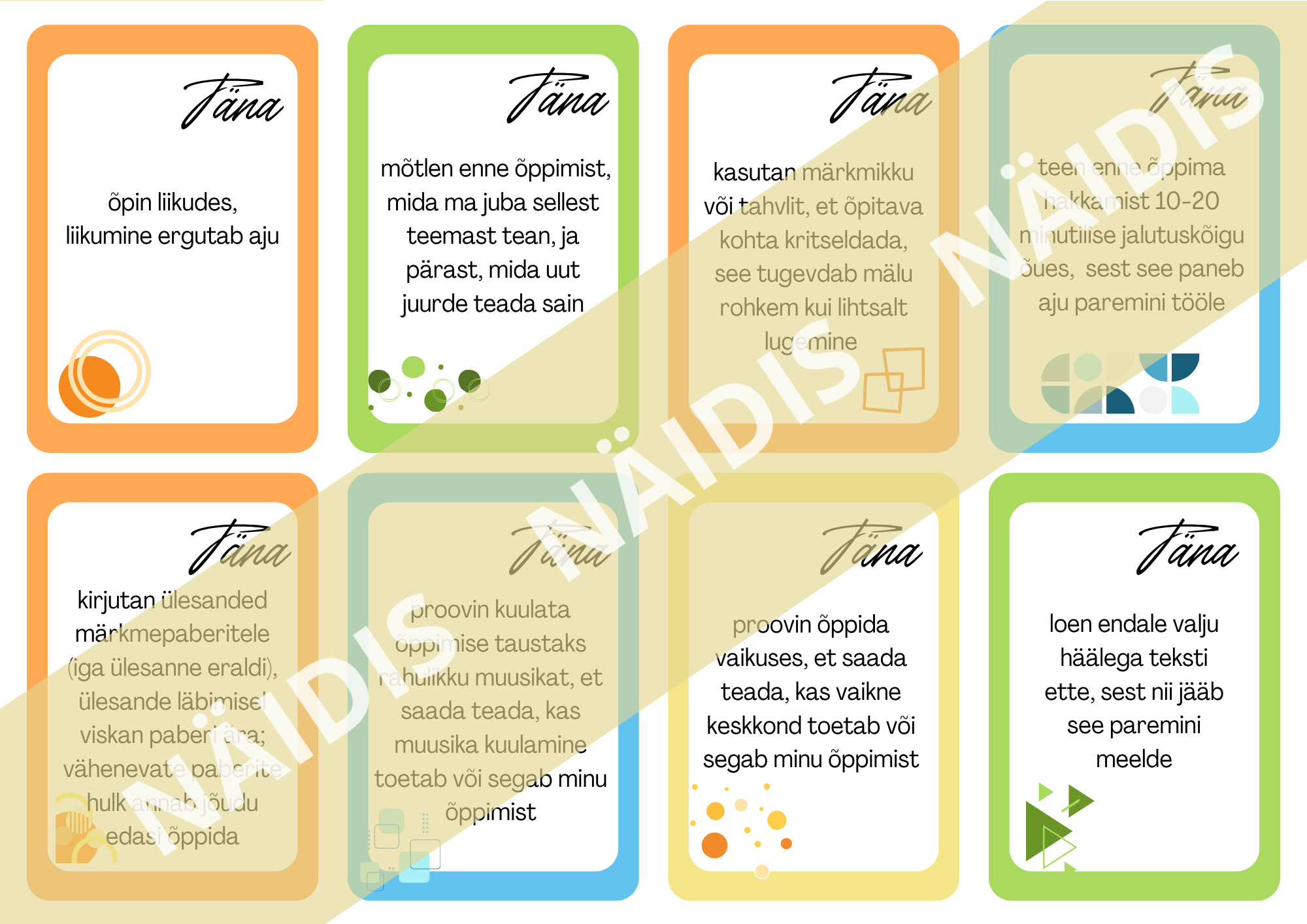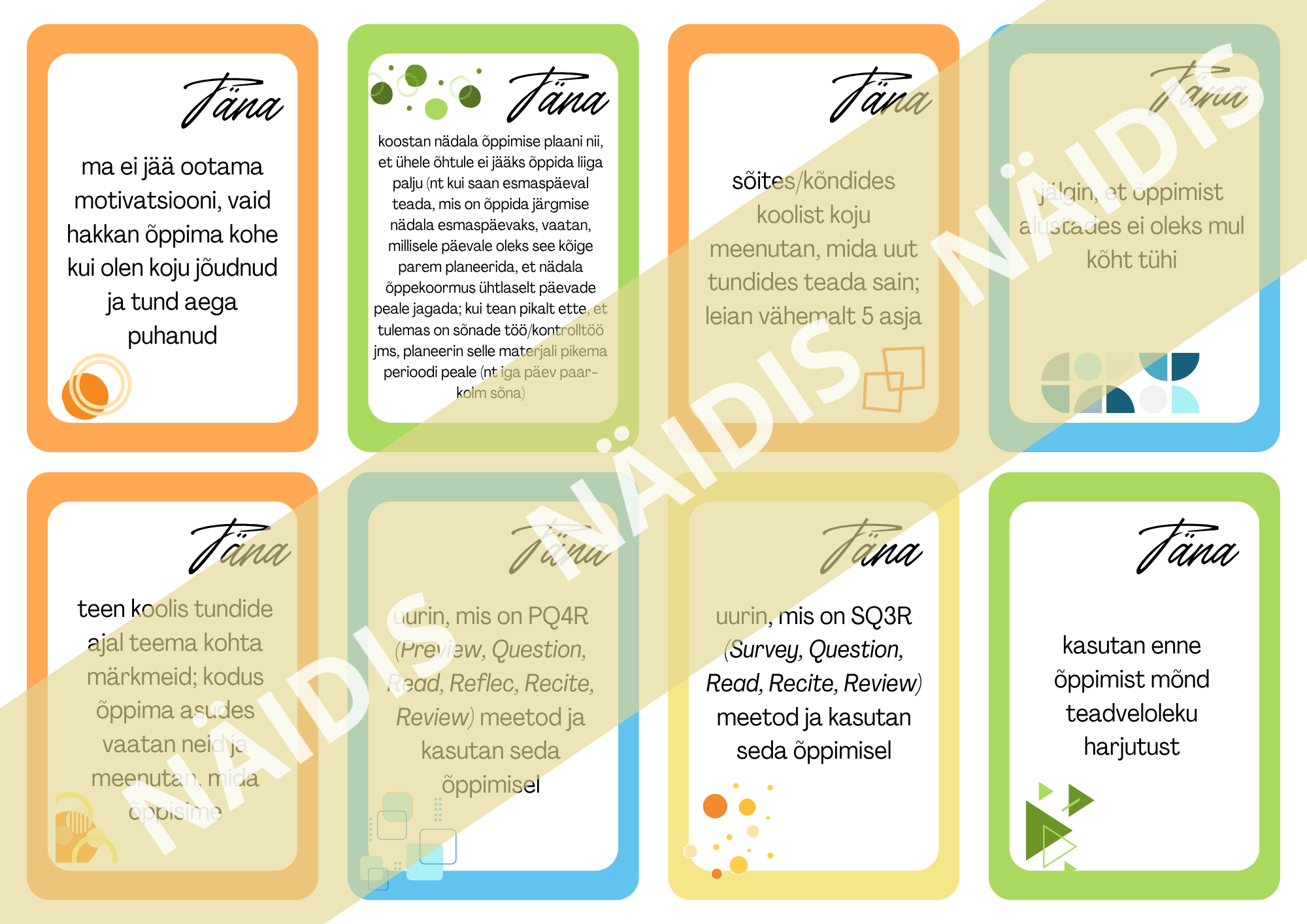 Kaardid “Üks päev korraga – õppimisharjumused”