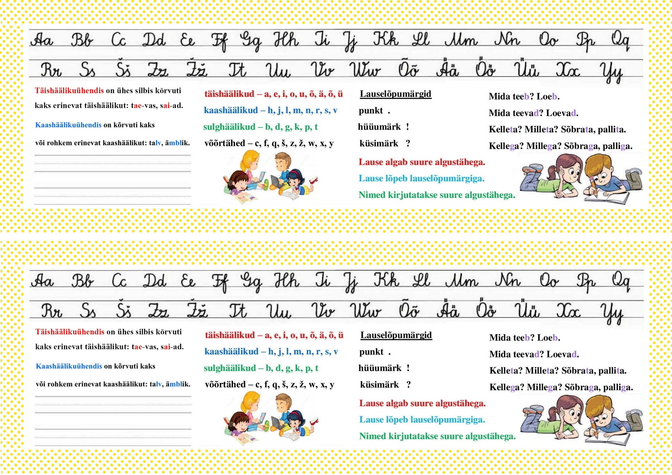 Kahepoolne järjehoidja eesti keele reeglitega 1. kl õpilasele